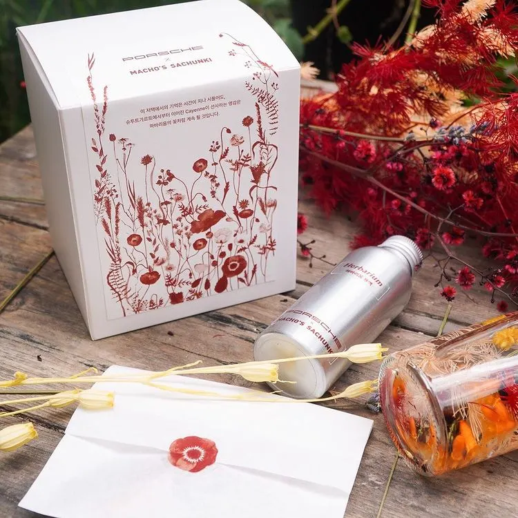 작년 2023년 여름의 포르쉐 프로젝트에서는 전시에서 사용하고 남은 드라이플라워로 가든어스의 하바리움 키트를 만들어 자연 순환의 가치를 전했습니다. 이 실천은 화려함을 간직했던 식물이 마냥 폐기물로 버려지는 것이 아닌, 새로운 가치를 입어 계속 될 것임을 이야기하는 하나의 순환 서비스였답니다. 마초의사춘기에서는 모든 프로젝트마다 디자인과 연출 계획의 고민에서 그치지 않고, 고객들과 함께 순환의 가치를 나눌 수 있는 서비스를 진중하게 고민하고 있답니다.