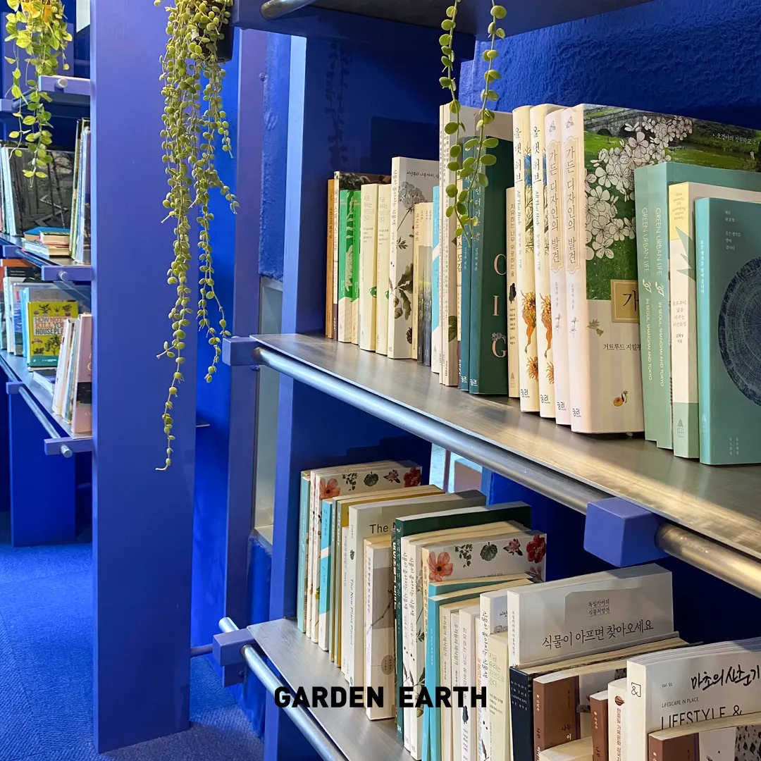 새롭게 오픈하는 플랜트 라이브러리 시즌2는 확실한 컨셉이 있습니다. 바로 ‘BLUE FOREST’입니다. 식물샵의 그린 그린한 인테리어를 연상하고 오신다면 이번 플랜트 라이브러리의 모습에 어쩌면 놀라실지도 모르겠어요. 보통은 식물하면 초록이 먼저 떠오르지만 가든어스는 식물의 초록 속에 숨겨진 블루에 대한 이야기를 모티브로 공간을 기획하였습니다.