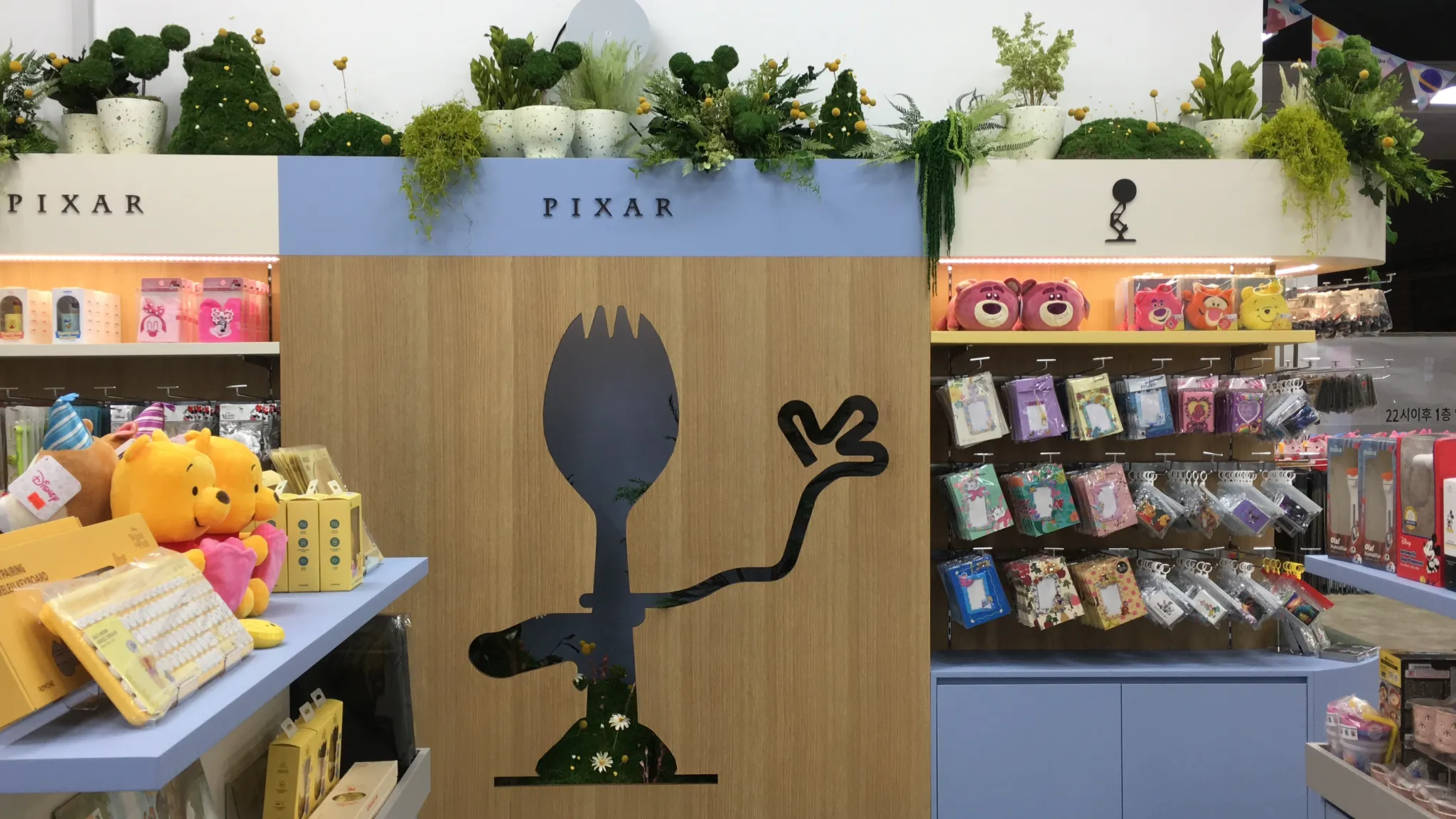 특히 메인 연출 공간이 되는 미키마우스 월의 경우, 잠실점(백라이트 사용) 과 수원점(플랜팅 공간으로 활용)의 연출적 표현에 차이를 두어 같은 컨셉, 스토리라도 배치하는 위치, 활용도 등에 따라서 다르게 디자인하였습니다.