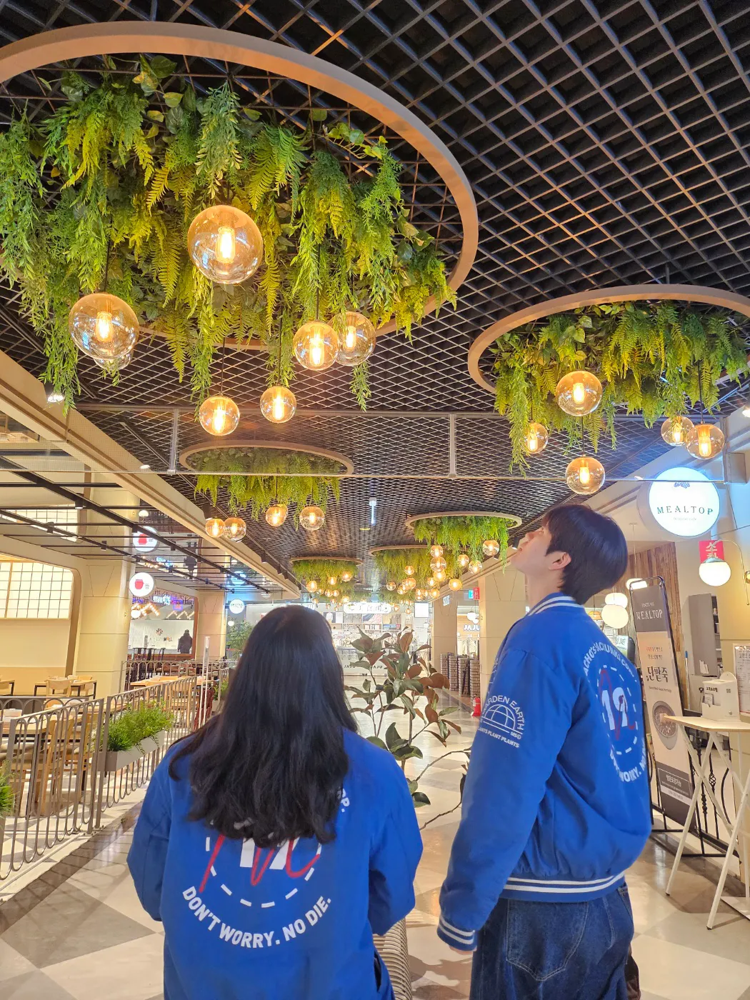 프라이버시를 지키는 파티션 역할의 식물, 벽면 전체가 녹음으로 이루어진 구내식당!