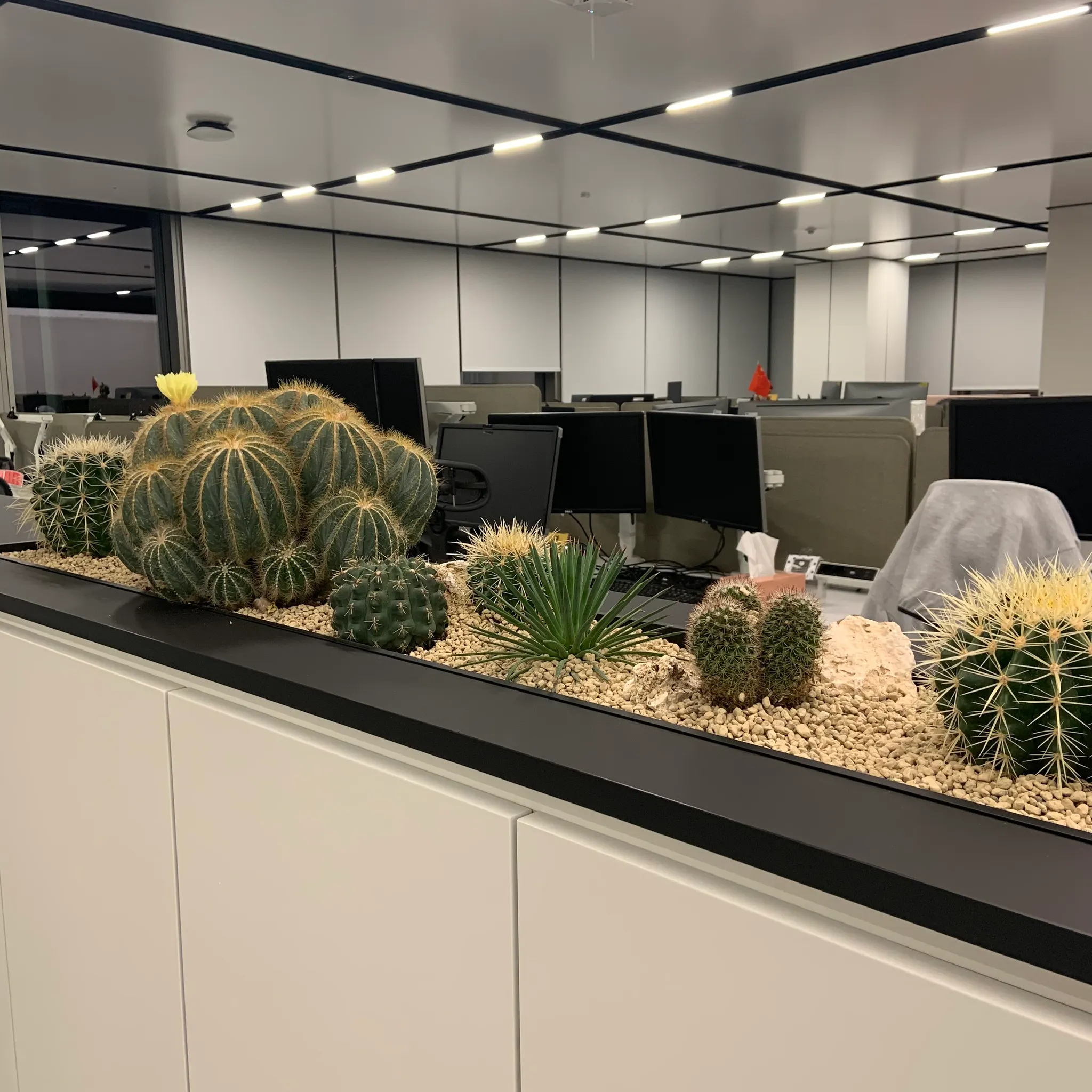 업무공간내에 식물은 쾌적하고 아름다운 환경조성, 기분전환 및 스트레스 해소, 회사의 이미지 전달, 자연에 대한 그리움 및 소중함, 일의 능률에 대한 기여도, 실내공기정화 등 다양한 장점을 가지고 있으며 이를 토대로 많은 오피스에 식물이 자리잡고있어요!