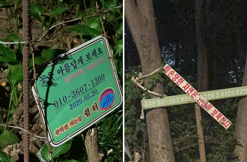 어두워지기 전에 얼른 내려가자며 천천히 가는데, 올라올 땐 보지 못했던 경고판들이 눈에 들어왔어요!