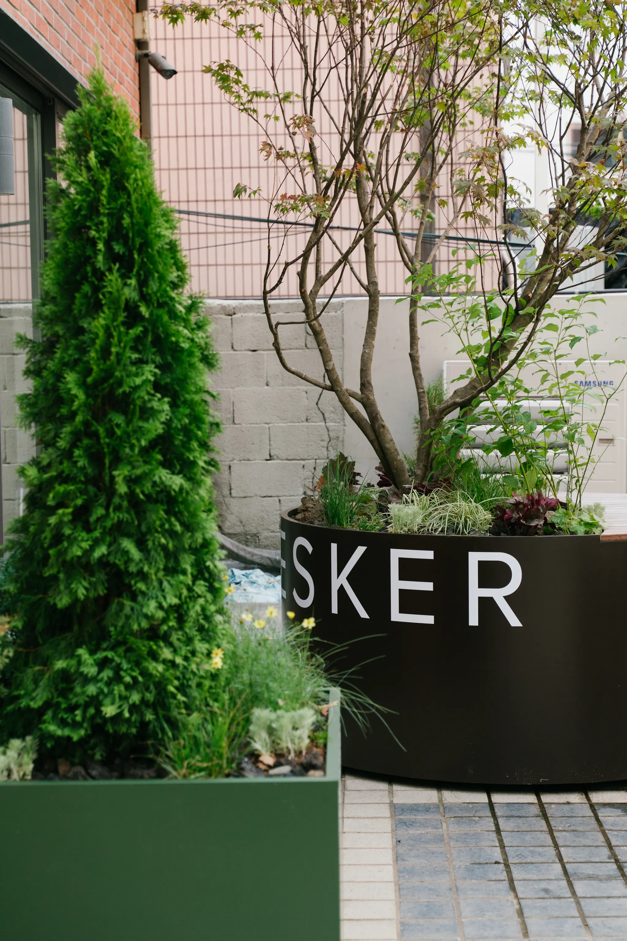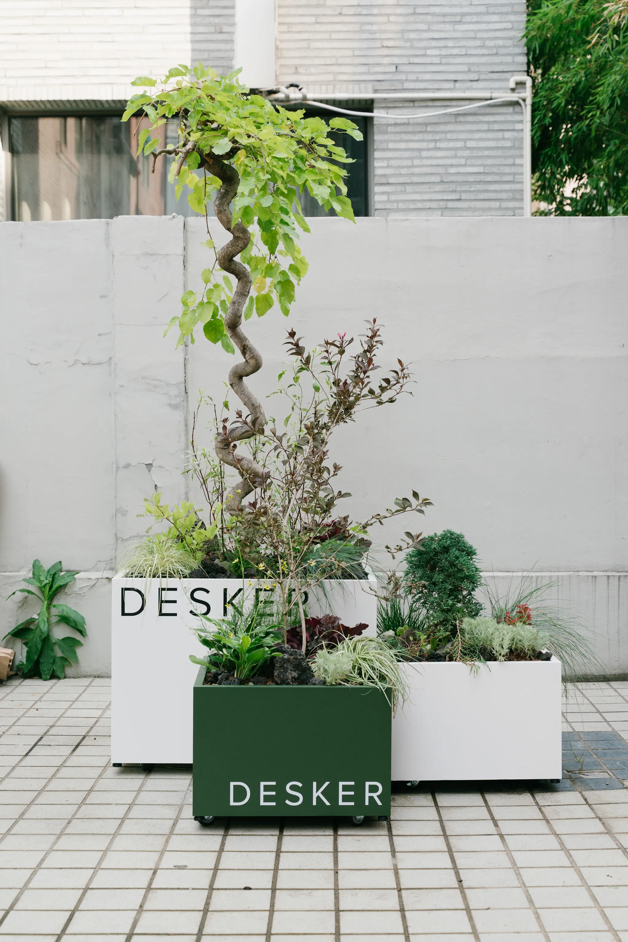 모듈 플랜터 및 벤치를 제작하여 배치하고, 키 큰 수목과 하부 식물을 적절히 합식하여 식물로 자연스러운 개인 파티션의 기능을 하도록 연출하였습니다.