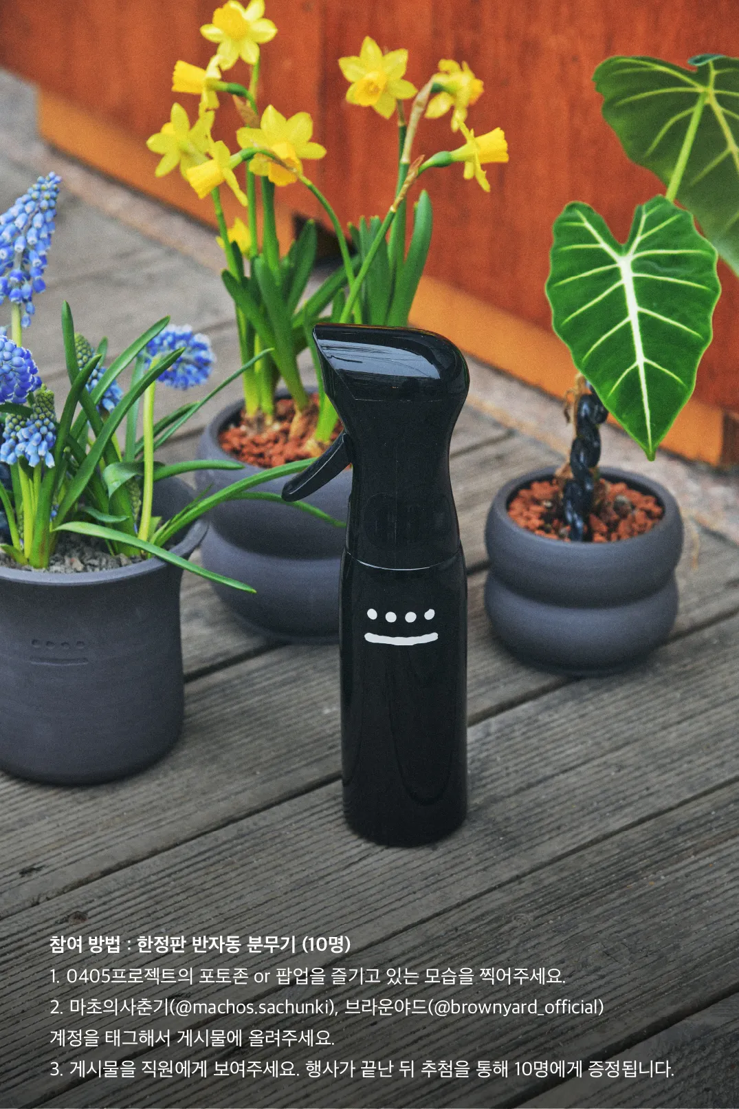 화분에 흙을 담기 위해 필요한 가드닝 툴, 0405 PROJECT의 메인 컬러인 블랙으로 준비했습니다. 손잡이 부분의 거친 질감과 벨벳 스웨이드 끈 고리가 포인트가 되어주는 모던한 느낌의 모종삽과 포크삽입니다. 작업을 시작하기 전에 손을 보호해줄 가드닝 코팅 장갑, 0405 PROJECT 로고가 매력적인 메탈 소재의 물조리개와 툴박스도 준비했답니다!!
