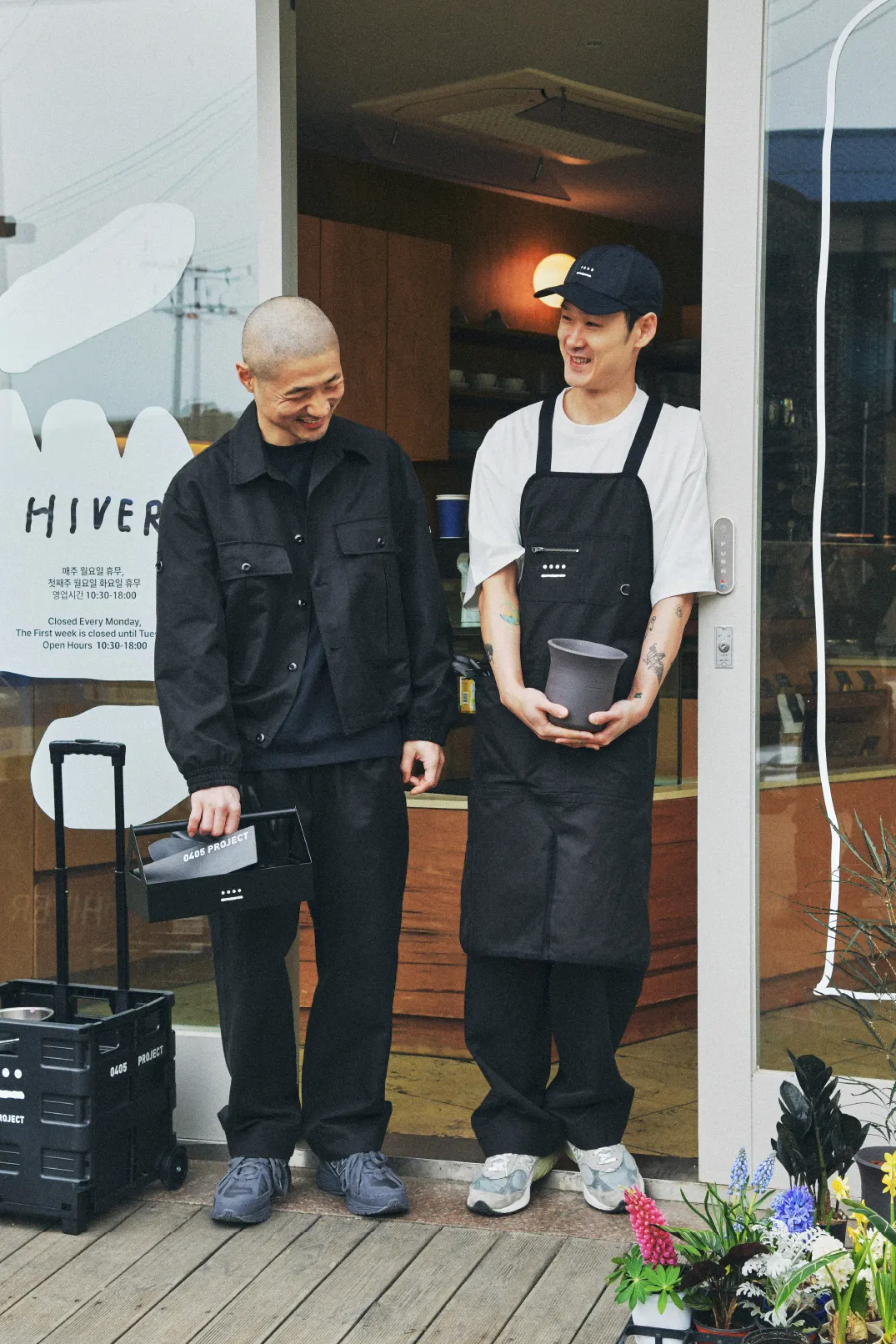 얼룩이 묻어도 관리가 쉬운 블랙 컬러의 자켓와 팬츠는 작업시 편안함을 위해 허리와 소매 부분을 밴딩으로 마감했구요, 그럼에도 불구하고 멋진 핏은 포기할수 없기에 무심하게 툭 떨어지는 워크웨어 실루엣을 살렸습니다. 여름까지 편안하게 입을 수 있는 반팔 티셔츠에는 목 뒷부분에 울트라마린 컬러의 케어라벨 디테일로 0405 PROJECT의 컨셉을 담았구요, 탄탄하고 밀도있는 소재감으로 핏감 또한 살렸습니다. 아무렇게나 무심하게 툭 써도 포인트가 되어줄 캡 모자는 전체적인 룩의 완성도를 높여주는 포인트입니다.