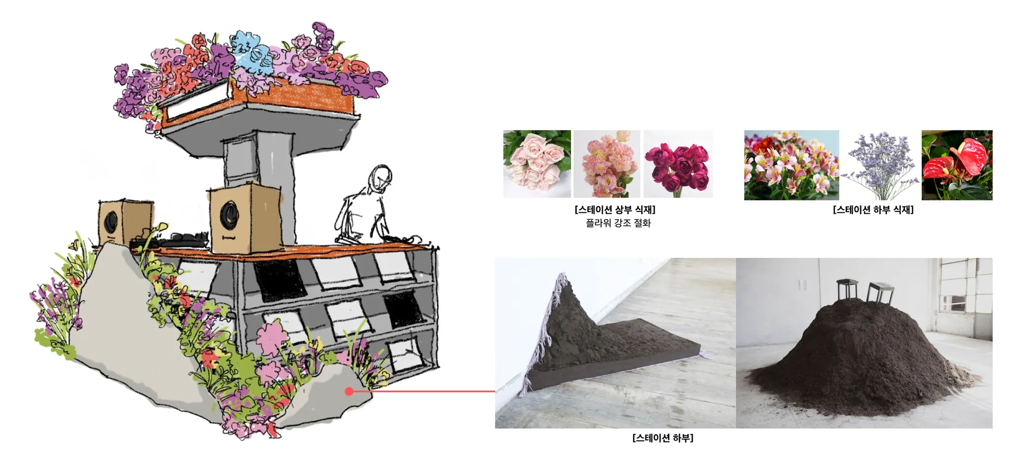 기존 하이츠 익스체인지 매장의 힙한 무드와 마초의사춘기가 제안하는 거친 넬솔을 사용한 흙의 표현, 그리고 다양한 컬러감의 꽃과 초록의 식물들이 한데 어우러져 새로운 분위기를 연출할 예정입니다!!