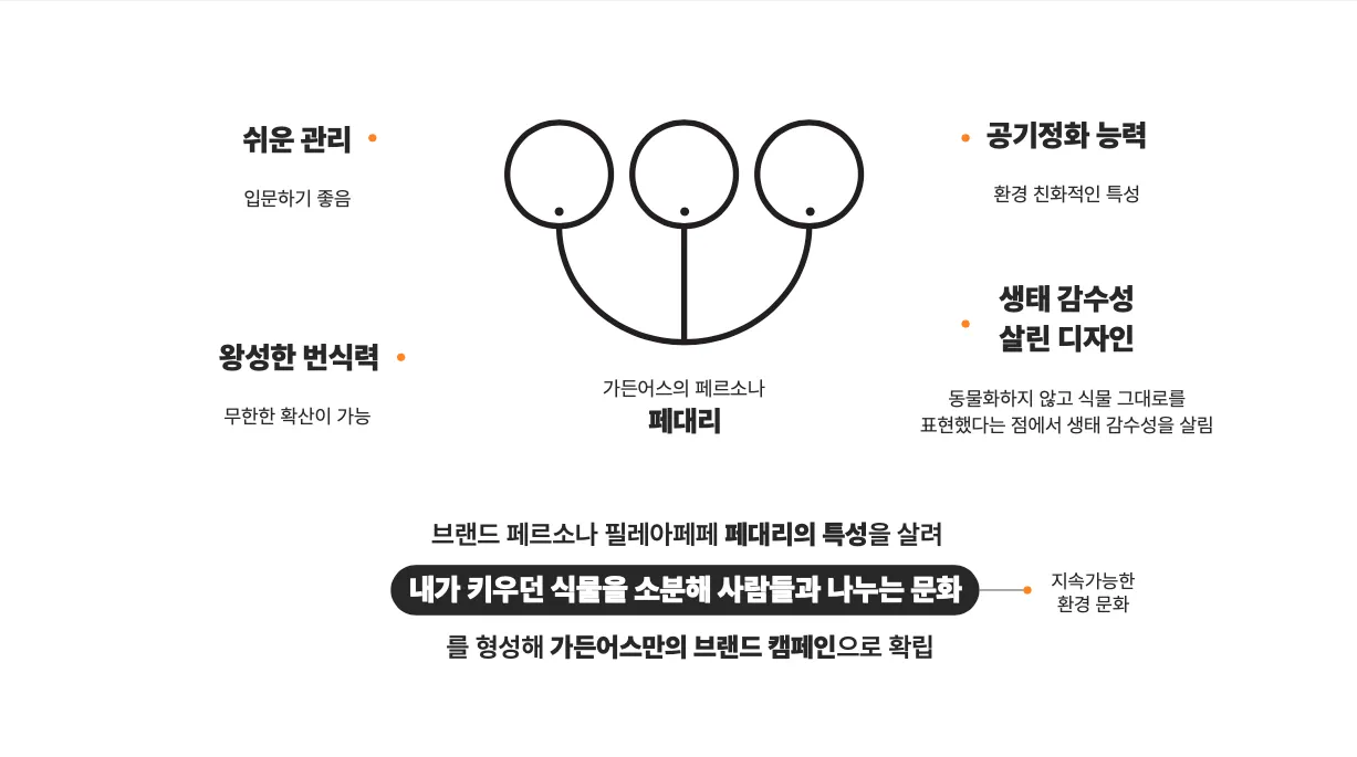 서포터즈 활동의 마지막엔 내가 키운 페페 자구에 돋아나는 새로운 자구를 주변에 선물함으로써 식물을 사고파는 대신 식물을 나눔하는 지속가능한 문화를 만들어 나가고자 하는 가든어스의 메지지가 담겨 있죠.
