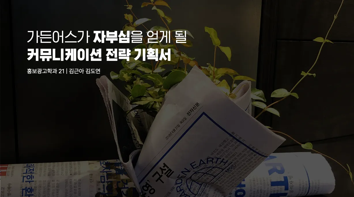 2022년에는 평범한 일상마저 버거운 도시인을 위한 ‘러스틱 라이프’를 키워드로 가든어스만의 브랜드커뮤니케이션 방안을 주제로 공모전이 진행되었습니다. 날카로우면서도 대학생들의 톡톡 튀는 아이디어가 가득했던 제안서 중에서 대상을 수상한 김근아, 김도연 학생의 <가든어스의 자부심, 자구심>를 모티브로 탄생하게 되었답니다.