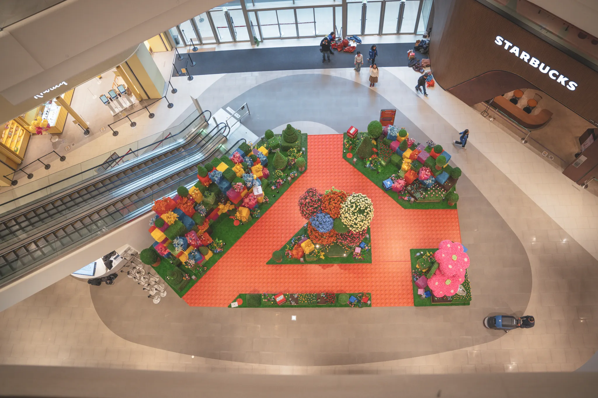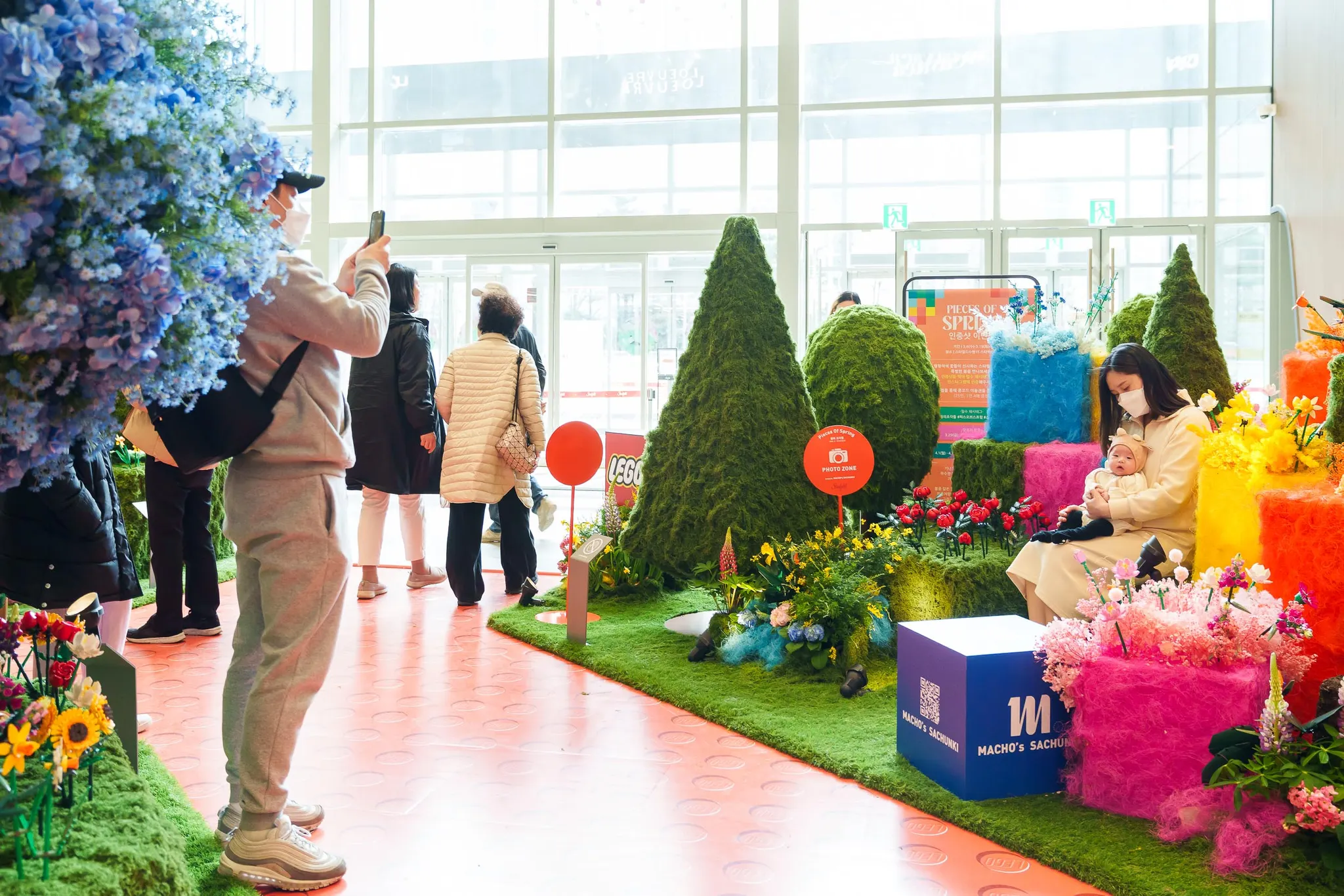 레고 피규어 형태에서 모티브로 한 키치한 형태의 자이언트 토피어리 오브제를 배치하여 또 다른 포토존의 역할을 부여하였습니다.