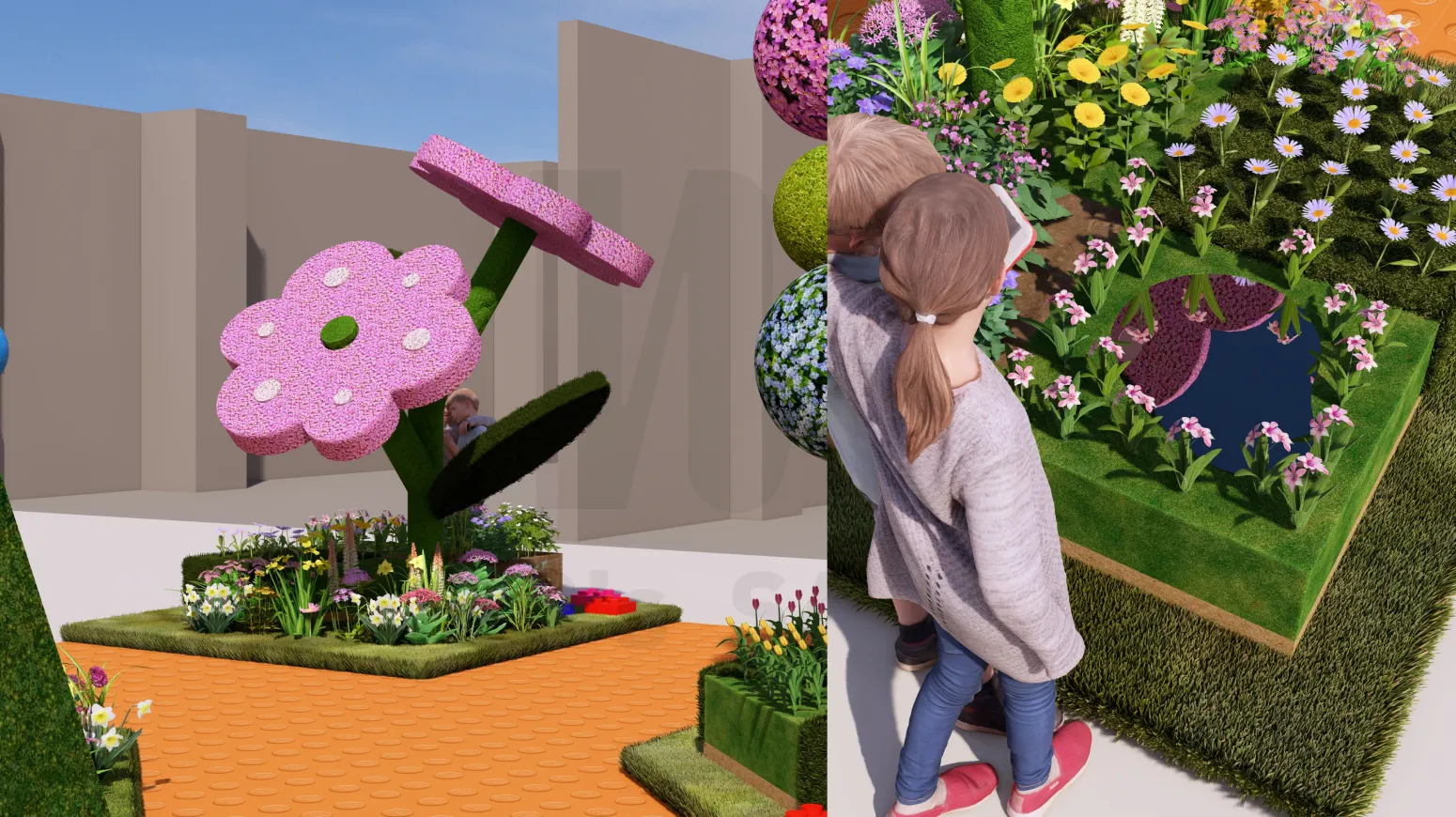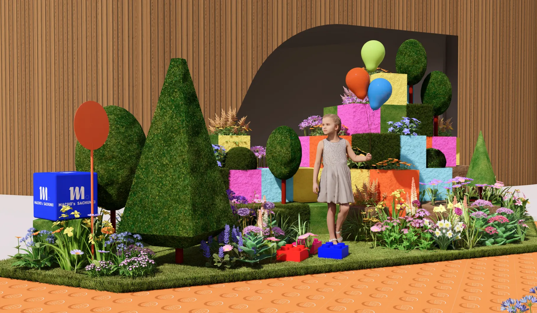 바로크 정원 속 토피어리의 모양과 레고의 모양에 영감을 받아 디자인한 봄의 조각들 팝업은 봄의 싱그러움과 식물들의 자연스러움을 선보이면서도, 하나하나의 형태들이 돋보여 마치 픽셀을 감상하는 것 같은 정원을 표현했습니다. 사각의 스퀘어 가든을 중점으로 여러가지 컬러감의 연출물과 식물들, 오브제들을 어레인지한 프로젝트 입니다.