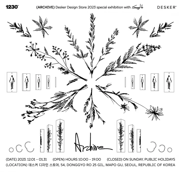 이번 전시는 데스커와 크리에이티브 아트 브랜드 1230 그리고 성립 작가와 협업하여 2023년 한 해를 마무리하는 의미를 담은 전시였습니다. 성립 작가가 선보인 다양한 작업의 흔적들을 아카이빙한 전시 형태로 이 작품을 보며 관람객들의 각자의 시간을 돌아보며 쌓아왔던 소중한 무언가를 마주하는 시간을 선사하고자 했다고 해요.