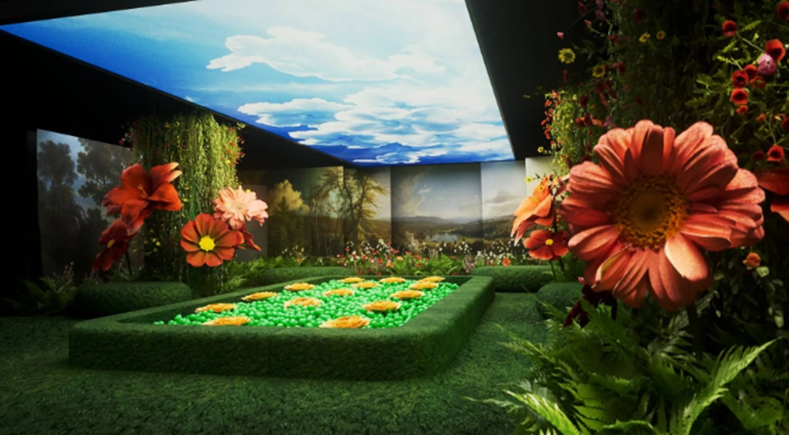 록펠러센터의 ‘BLOOM’은 단일 설치물이 아니라 공간 전체를 활용한 동선 기반 몰입형 설치 전시입니다.