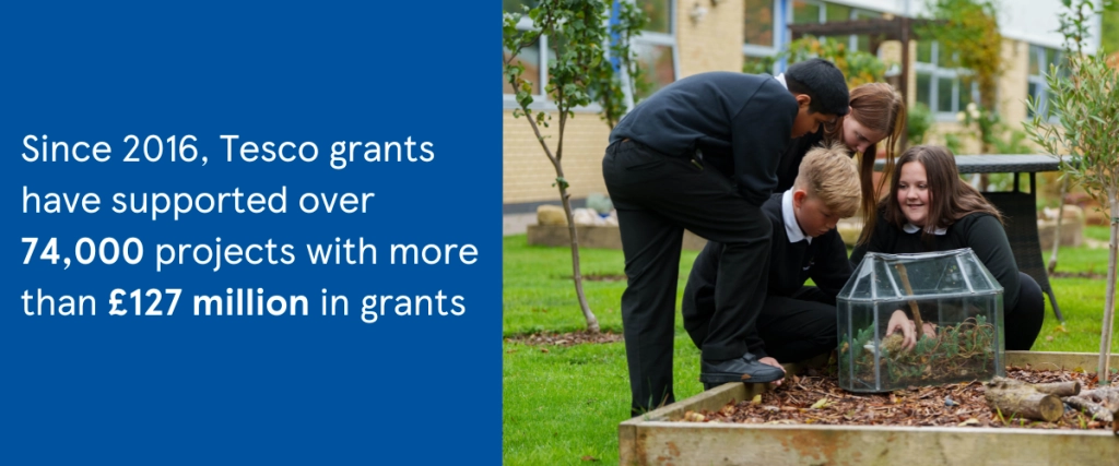 Tesco는 Stronger Starts라는 프로그램을 통해 지역 학교와 커뮤니티 단체가 제안한 야외 공간 프로젝트를 지원하고 있습니다. (https://tescostrongerstarts.org.uk)