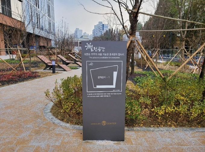 예를 들어 복합시설에서 흔히 볼 수 있는 공개공지 녹지 공간은 도시 안에서 누구나 이용할 수 있는 열린 공간이지만 실제로는 단순한 안내판과 조경 시설만 설치된 채 이용 프로그램이나 운영 구조 없이 유지되는 경우도 많습니다. 결국 녹지는 사용되는 공간이라기보다 유지되는 시설에 가까운 형태로 남게 되는 것이죠.