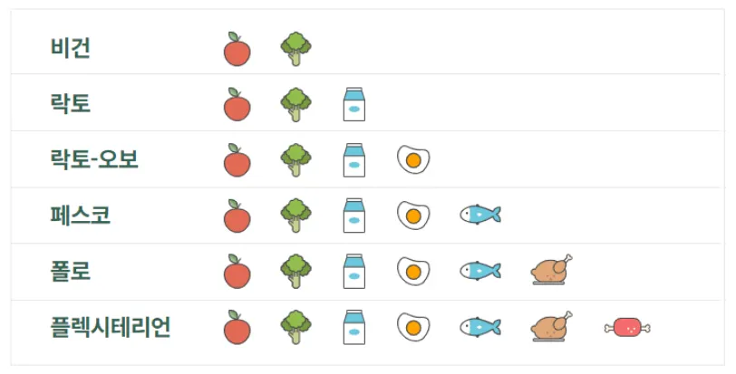 그냥 육류만 안먹으면 비건이라고 하는거 아니야? 라고 생각하시는 분들이 많을텐데 비건의 종류도 여러가지가 있는거 아셨나요?