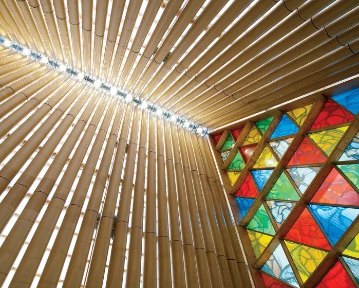 두 번째로 소개할 프로젝트는 유명한 건축가 Shigeru Ban이 설계한 CARDBOARD CATHEDRAL입니다. 종이로 만들어진 성당은 재활용 가능한 자재를 활용하여 설계되었으며, 긴급 상황에서 쉽게 설치할 수 있는 구조를 가지고 있습니다.