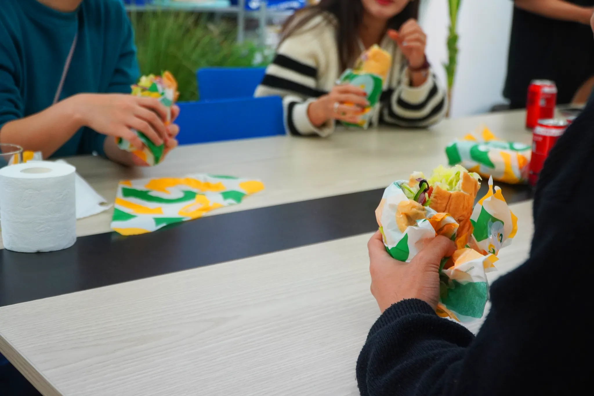 평소에는 회사에서 제공하는 도시락이나 샐러드를 먹지만, 매달 정해진 날, E-LUNCH 날에는 마초의사춘기 크루는 환경을 고려해 비건 음식을 선택합니다. 비건 식사를 함께 나누며, 자연을 사랑하는 회사로서 어떻게 하면 더 자연 친화적인 솔루션을 만들 수 있을지에 대해 진지하게 고민합니다! 일상 속에서 그리고 우리의 프로젝트 속에서 어떻게 지속가능성을 실천할 수 있을지를 논의하며, 모두가 아이디어를 쏟아내는 자리가 됩니다.