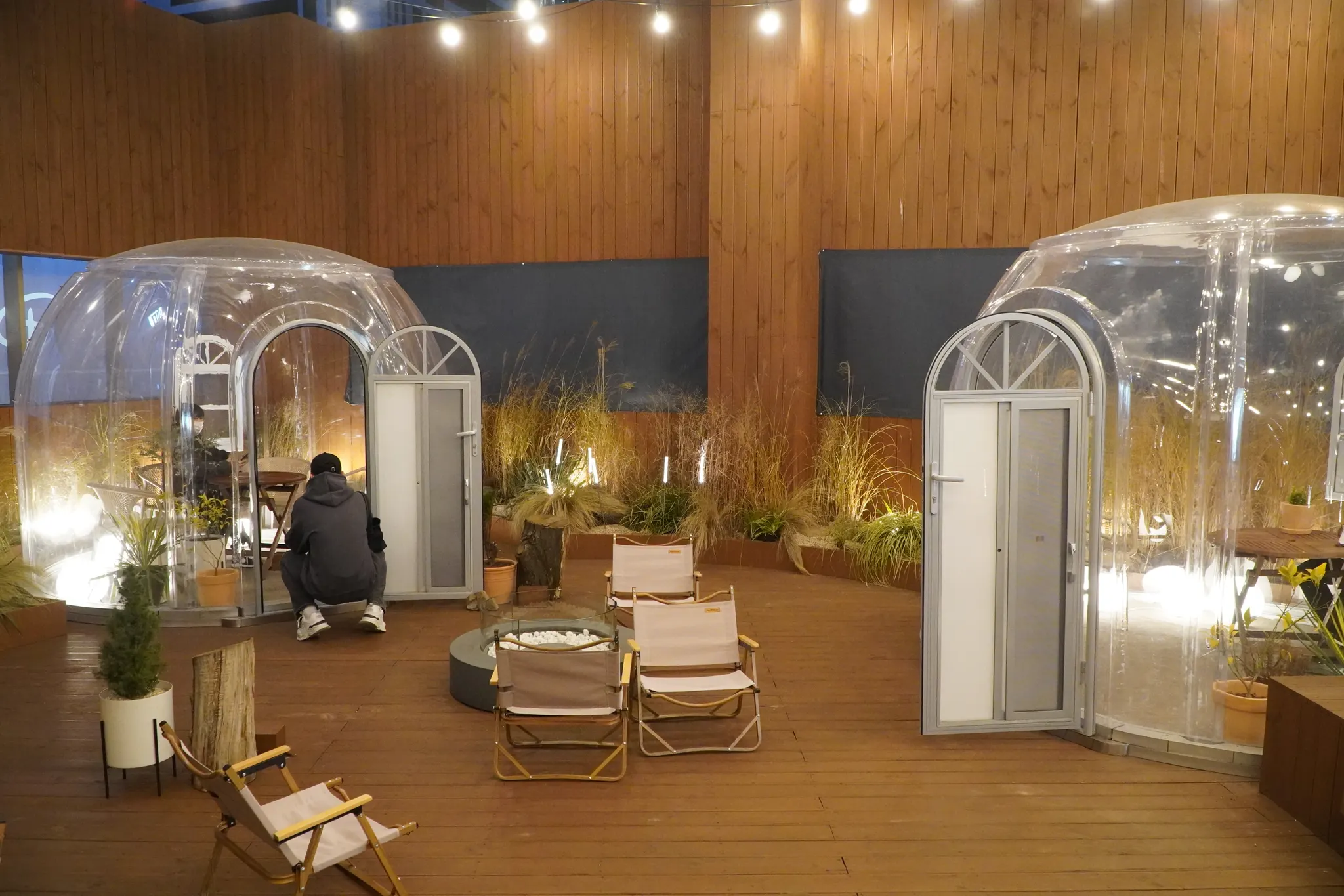 저 온실 속에는 따뜻한 난로가 손을 녹여주고 투명 돔 넘어 자연이 함께하니 날은 춥지만 괜히 마음도 몸도 따뜻해지는 것만 같죠?