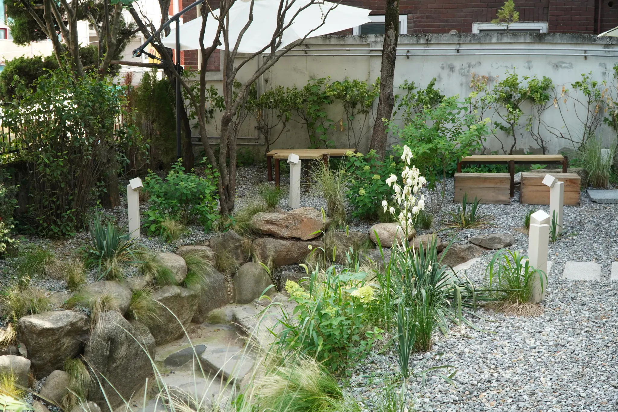 고즈넉한 분위기에 하늘하늘한 식물들이 함께하고 있는 이 사진은 마초의사춘기에서 진행했던 연희대공원 외부 조경입니다.