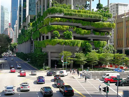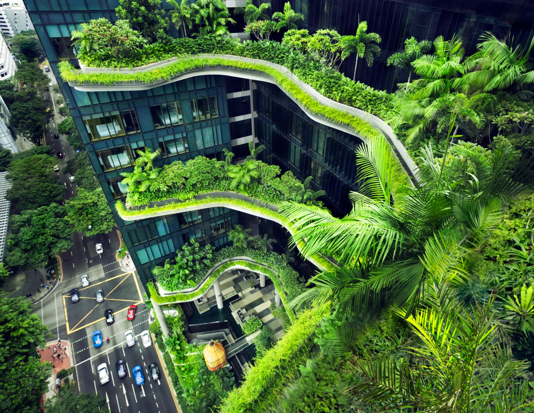 싱가포르 정부는 이에 그치지 않고 2009년 부터 스카이라이즈 그리너리, 즉 건축물의 벽과 옥상을 녹화하고 정원으로 조성하는 사업을 시작했습니다. 크게는 옥상녹화 rooftop greenery와 수직녹화 vertical greenery 두 가지로 나눠지는데, 현재는 155헥타르에 달하는 면적이 스카이라이즈 그리너리로 구성되어 있고, 2030년까지 200헥타르로 넓히는 것이 목표입니다. 스카이라이즈 그리너리를 대중화시키기 위해 2015년부터 인센티브 제도도 운영하며, 설치비용의 최대 50%까지 지원해주고 있습니다.
