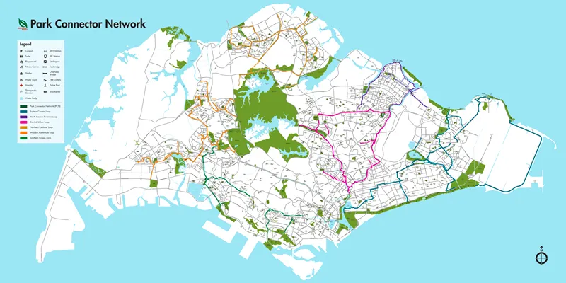 그렇게 1991년 인구 1인당 8㎡의 녹지 면적을 목표로 향후 20-30년 간 360km의 파크커넥터를 조성하는 계획을 수립, 지금까지 도시계획에 반영, 실행하고 있습니다. 이렇게 탄생한 파크커넥터 네트워크는 도시 전체의 녹지공간과 공원을 연결, 시민의 접근성을 높이고 연결통로 자체가 다시 녹지공간이 되는 선순환 구조를 만들어냈습니다. 현재 300km가 넘는 파크커넥터를 조성했으며, 2030년까지 400km로 구간을 연장할 계획입니다.