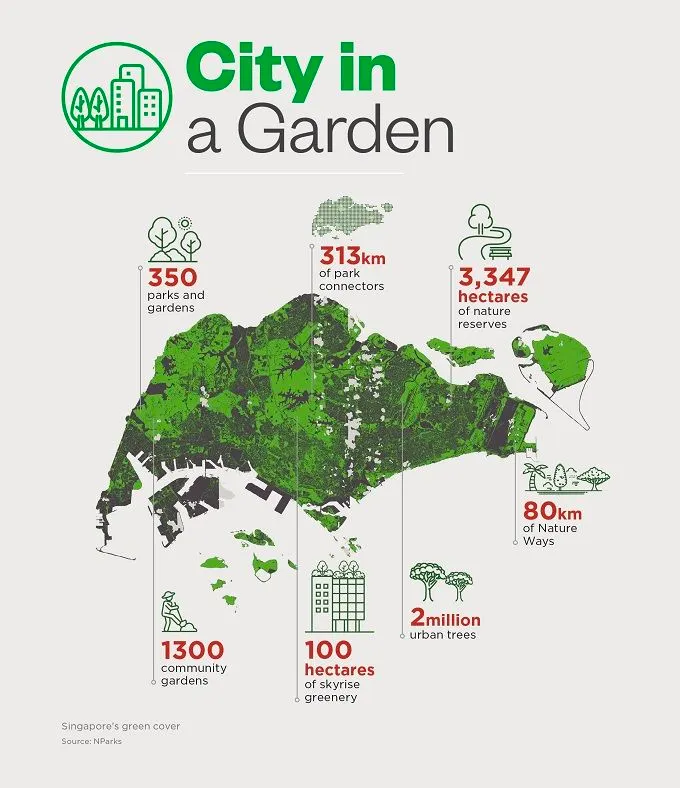 면적 692.7k㎡로 서울시(600k㎡)만한 크기에 인구 약 500만명이 살고 있는 작은 나라 싱가포르. 하지만 도시 어디에서든 꽃과 식물, 잔디를 볼 수 있어 마치 잘 가꾸어진 정원 안에 있는 느낌을 받는데요. 이는 싱가포르 국가 설립 초기부터 가든시티 Garden City 라는 슬로건으로 다양한 환경 정책을 펼쳤기 때문입니다.