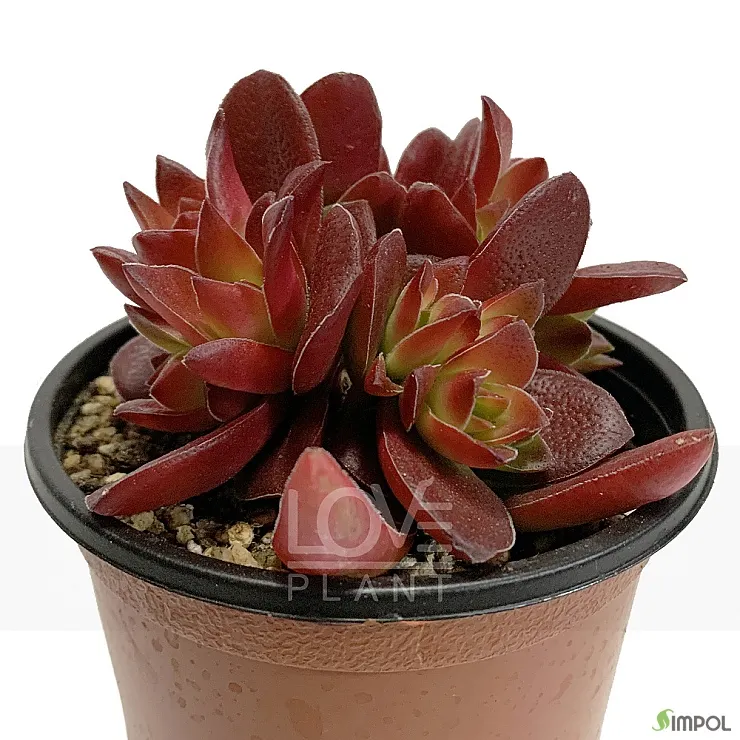 잎이 가늘고 긴편이며, 겨울철에는 완전한 붉은 색으로 바뀝니다. 처음에는 연한 녹색으로 자라지만 햇빛을 많이 받으면 강한 붉은 색을 띄며 잎을 뜯어 땅에 싶으면 새로운 적귀성을 만나볼 수 있습니다.