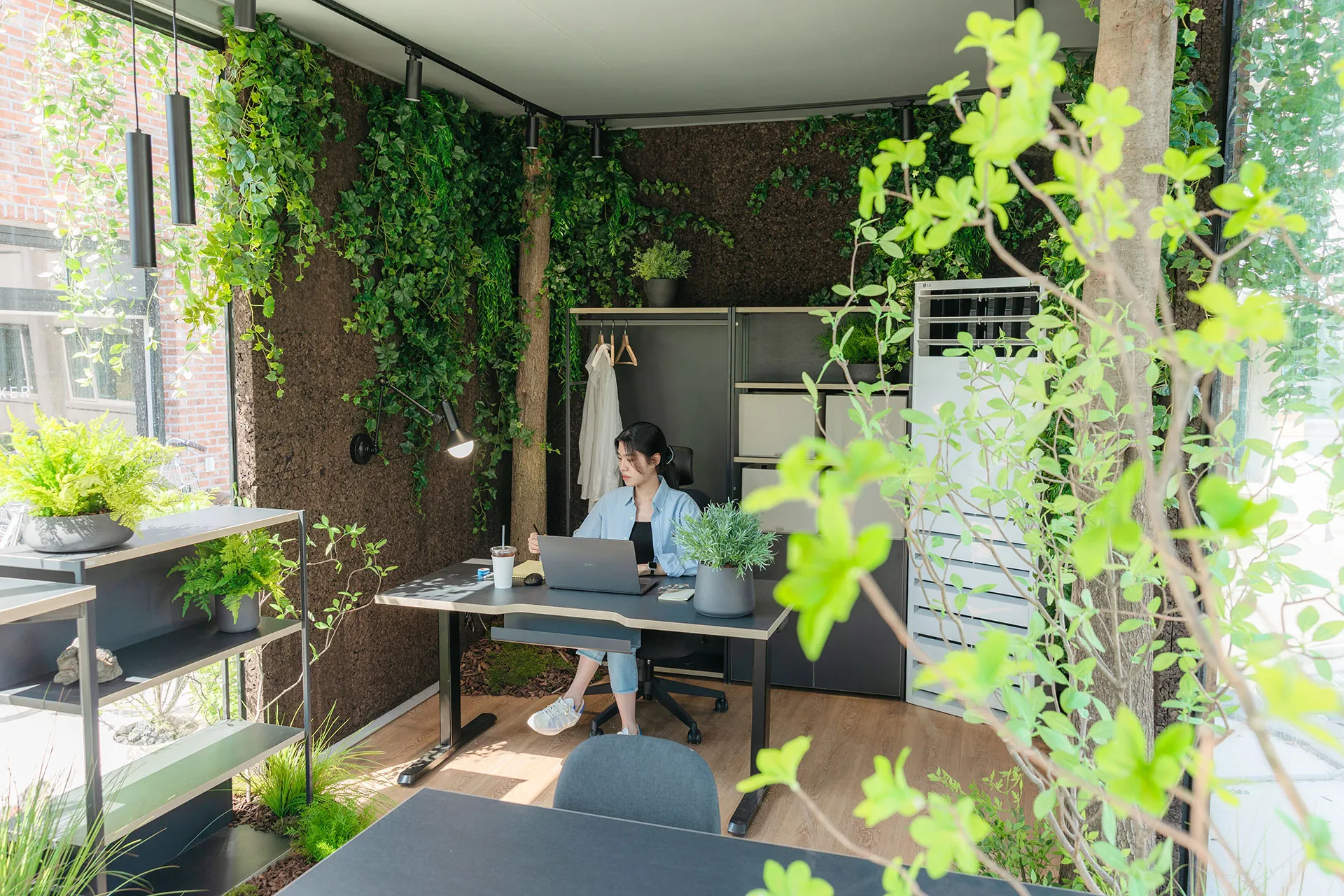 주변이 모두 식물로 꾸며진 이 공간은 워커들의 눈과 호흡을 더욱 편하게 하여 일에 몰입할 수 있게 도와줍니다.