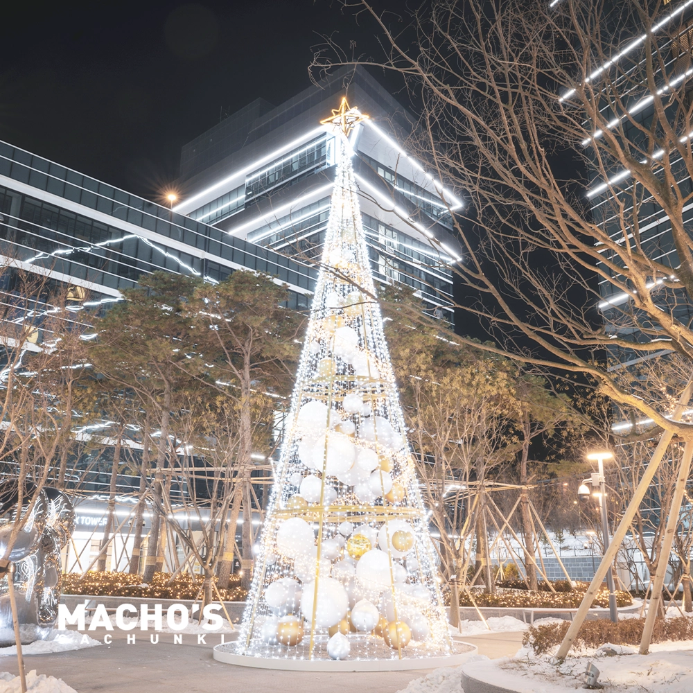 10m높이의 프레임 트리는 프레임 내부 대형 오너먼트 행잉과 외부 LED 시공을 통해 낮에는 내부 장식물을 감상하며, 밤에는 크리스마스의 불빛을 느낄 수 있도록 연출하였습니다.