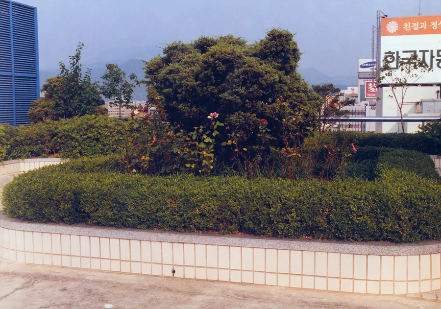 옥상조경, 법정조경 하면 제일 많이 봤을법한 식물, 회양목을 아시나요? 동글동글한 작은 많은 잎들이 옹기종기 모여있는 식물인데 아파트, 옥상, 길거리 어딜가도 조경수로 많이 사용되는 나무입니다. 별도의 특별한 관리가 없이도 잘 자라는 특징이 있다보니 90년대에는 정말 흔하게 많이 보였던 식물이지요.