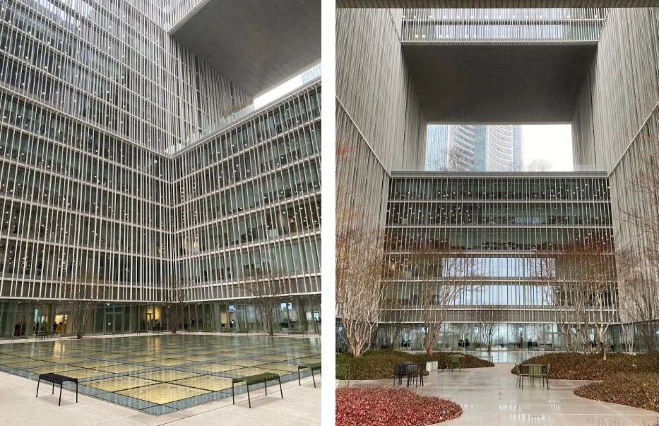 가을 비오는 날의 중정 모습인데 굉장히 멋있죠? 근무 중인 임직원들이 1층까지 나오지 않더라도 잠시 바람을 쐬며 도심 속이 아닌 자연에 나와있는 느낌을 줄 수 있도록 계획했다고 하는데 제가 아모레퍼시픽 임직원이면 매일같이 여기에서 리모트워크를 할 것 같습니다. 하지만 아쉽게도 아모레퍼시픽 임직원이 아니면 옥상정원 이용은 어렵다는 점…