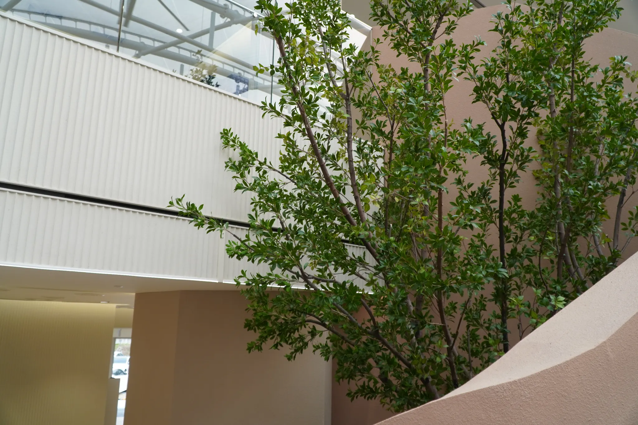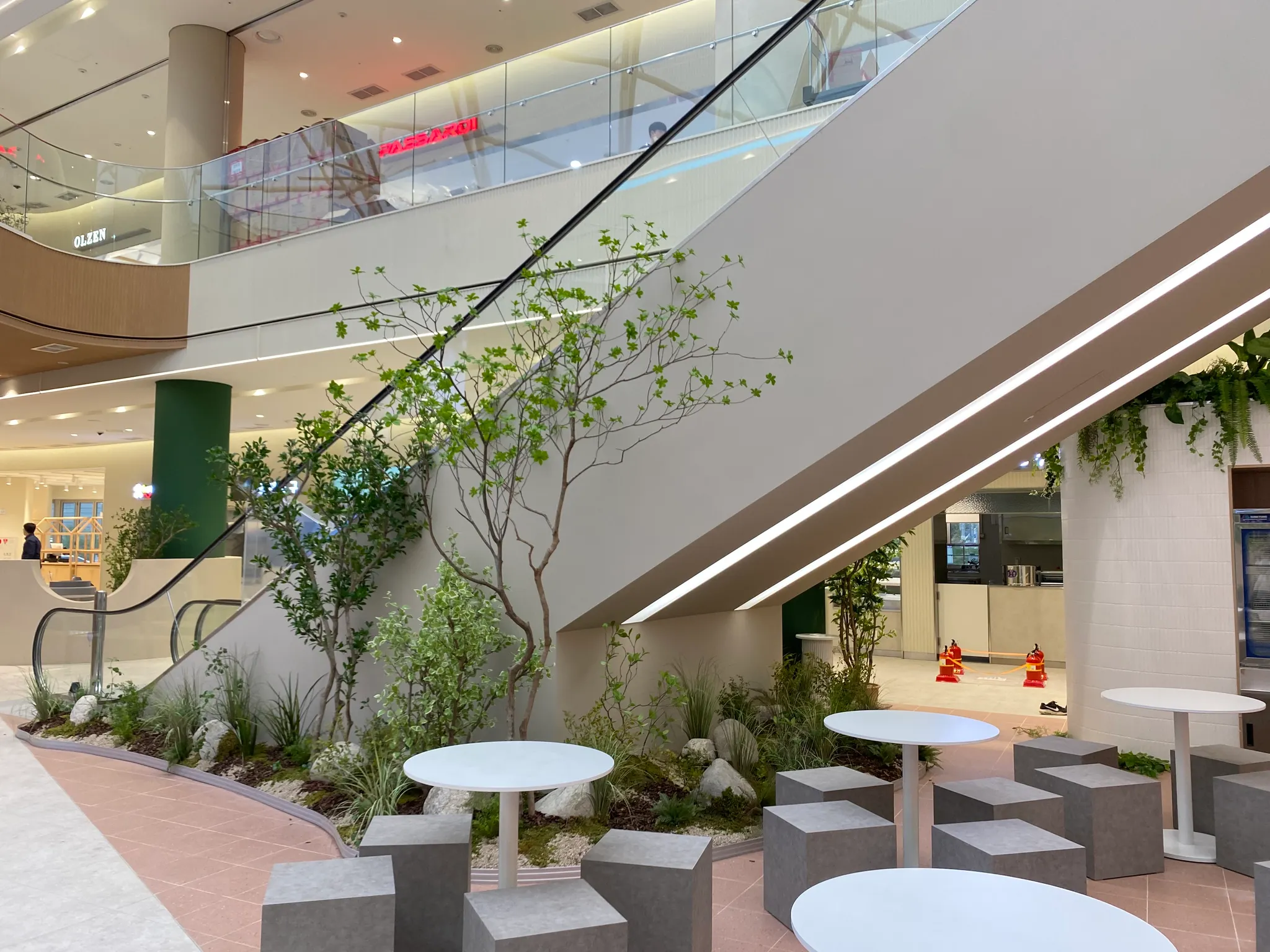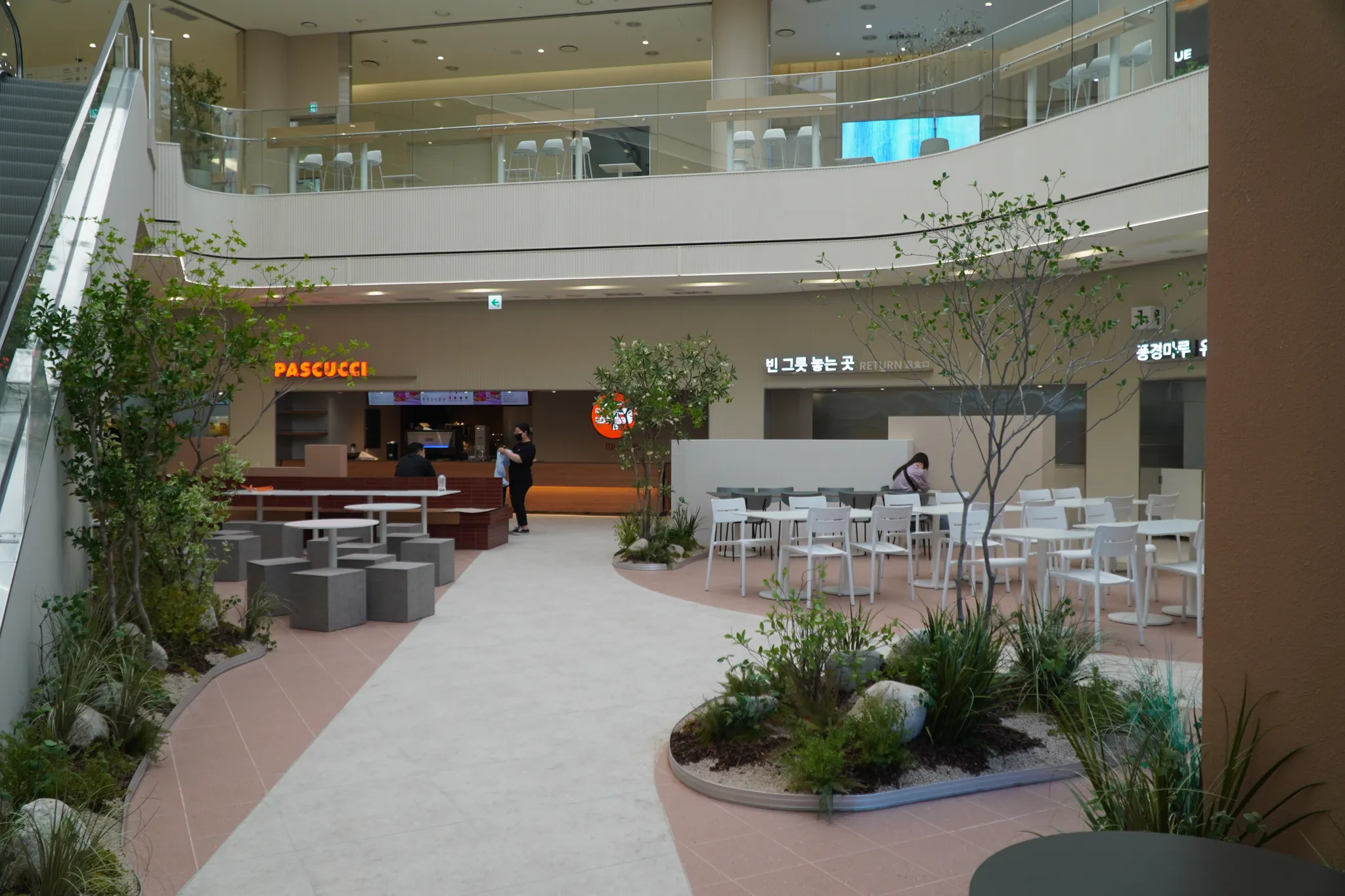 ‘잠시의 힐링’을 위해 오는 휴게소. 편안한 마음으로 몸과 마음을 녹이고 가시길 바라는 마음으로 그리너리 플랜테리어로 연출했습니다. 휴게소에서도 울창한 숲의 일부를 느낄 수 있도록, 실제 나무를 건조해 조화 잎을 붙여 만든 대형 나무를 공간 중간중간에 식재했습니다.