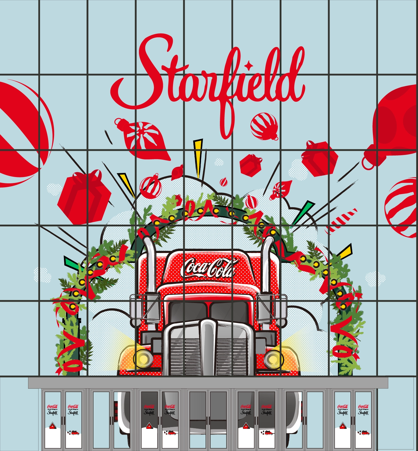 선물을 가득 싣고 스타필드 하남에 도착한 코크 트럭을 표현했습니다.