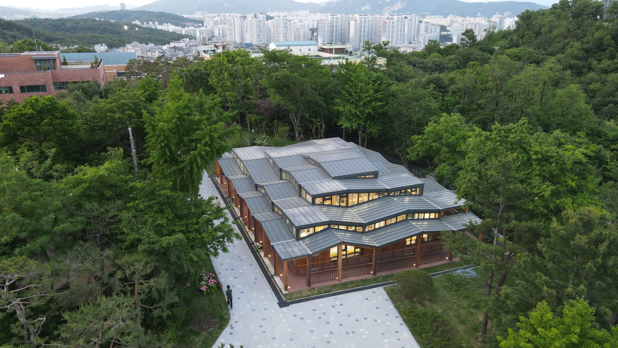 월곡산 자락길을 형상화한 지붕 (출처 : 숲속 오동도서관)