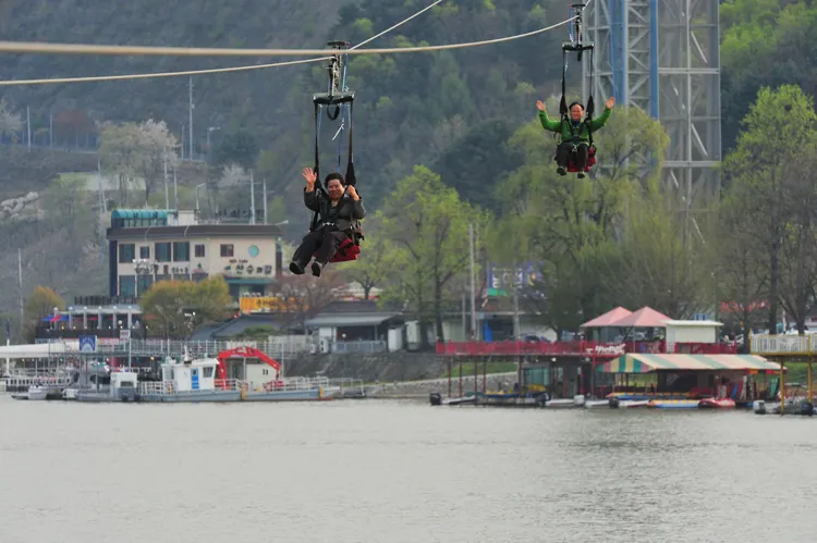 짚라인을 타고 남이섬으로 가는 어르신분들(출처 : 가평나우)