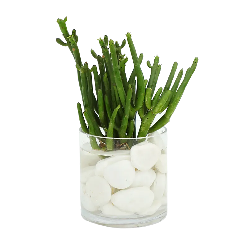 청산호는 길쭉한 연필을 닮아서 연필선인장으로도 불리우는 다육식물이에요. 햇빛이 들어오는 방향으로 자라는 청산호는 주기적으로 화분을 돌려가며 키워주셔야 똑바르게 자란답니다. 다육식물이기 때문에 물을 많이 주지 않아도 되고 생명력이 강해 초보가드너들이 키우기에 적합한 식물입니다. 하지만 식물에 상처가 나거나 부러지게 되면 그 부위에서 하얀 진액이 나오는데, 이 진액에는 독성이 있어 알러지 반응을 일으킬 수 있기 때문에 다루실 때 항상 주의가 필요한 식물입니다.