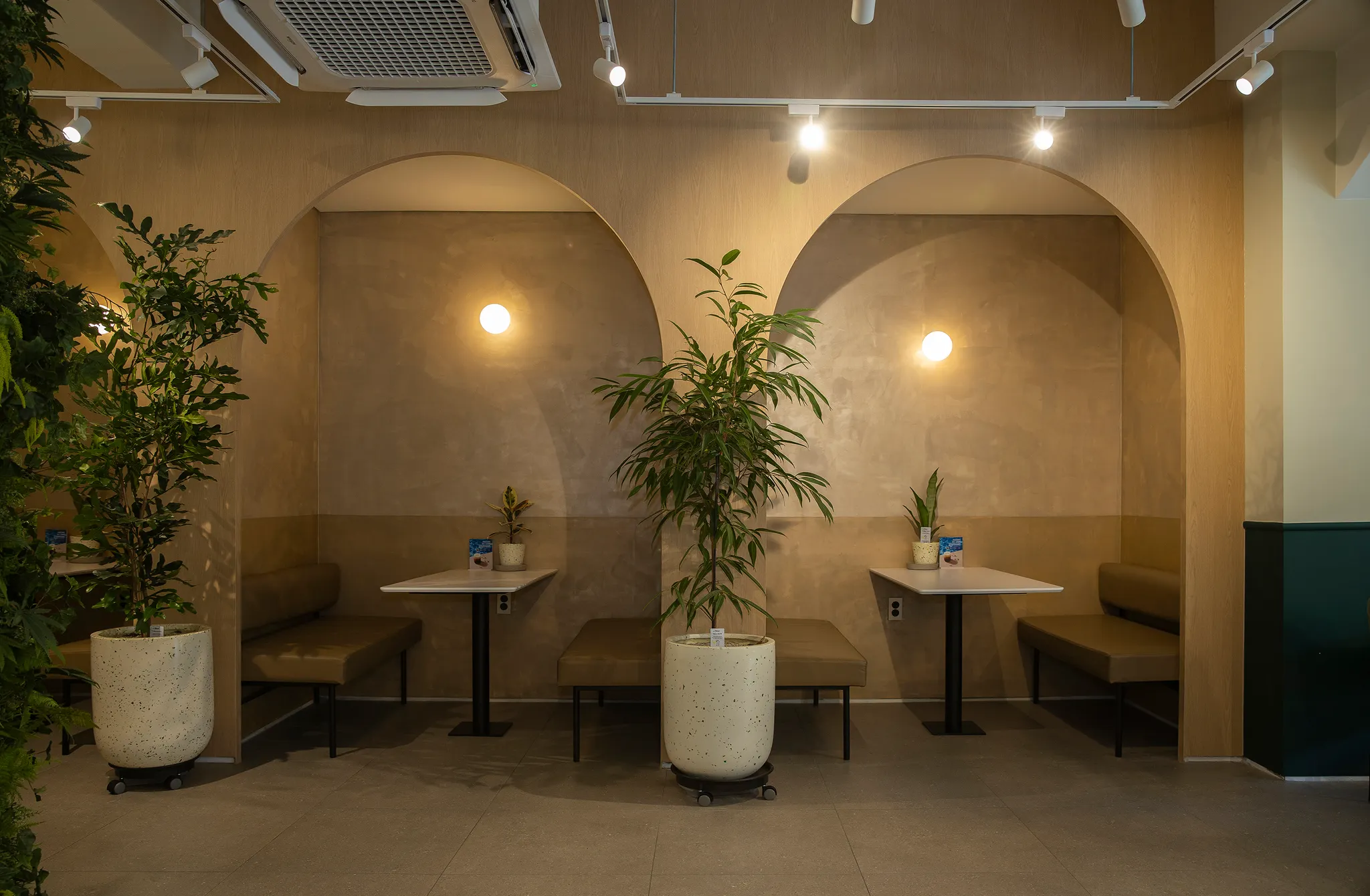 버스정류장, 지하철역은 다음 장소로 이동하기 위한 잠깐의 대기장소이자, 여정의 시작이라고 볼 수 있습니다. 나뚜루 시그니처 입구의 데크를 ‘STATION’으로, 여정의 시작을 위해 가만히 서서 기다려야하는 어쩌면 조금은 지루한 과정을 다양한 집기와 식물 식재 연출을 통해 시각적 즐거움과 휴식을 주는 장소로, 또 하나의 목적지가 될 수 있도록 하였습니다.