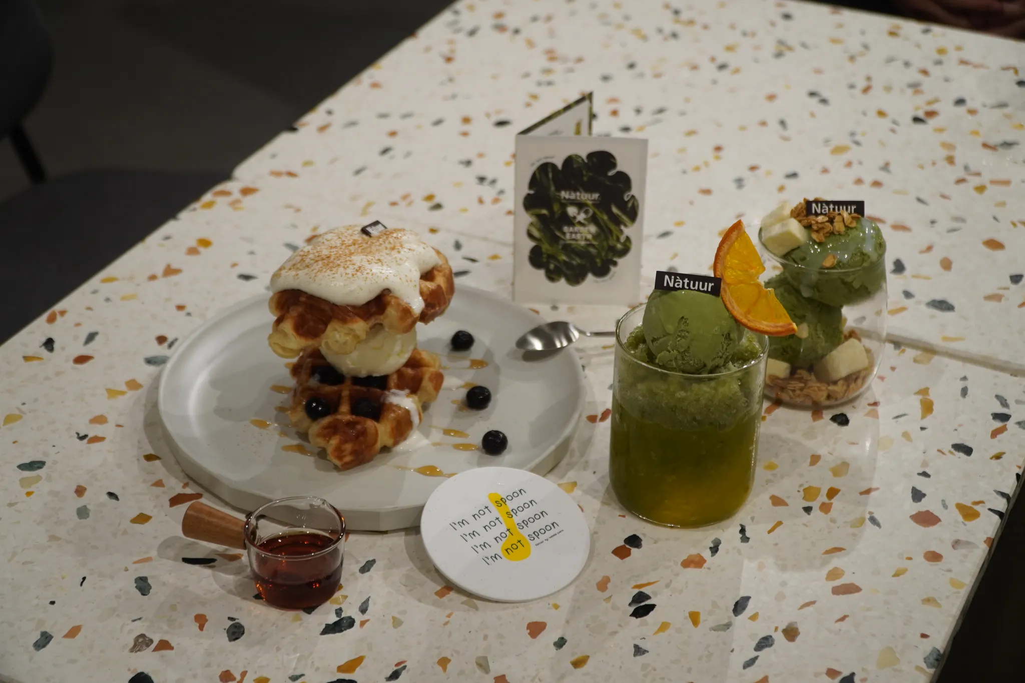 마초의사춘기의 서비스 브랜드 가든어스에서는 나뚜루 시그니처와 함께 아이스크림 일회용 스푼을 미니삽, 식물 이름표 등으로 다양하게 재활용할 수 있음을 알리는 캠페인을 진행하였습니다. 음료의 라떼아트부터 코스터, 그리고 재활용 소재를 사용한 화분 커버나, 옷이나 모자, 가방과 같은 굿즈도 함께 제작하였습니다.