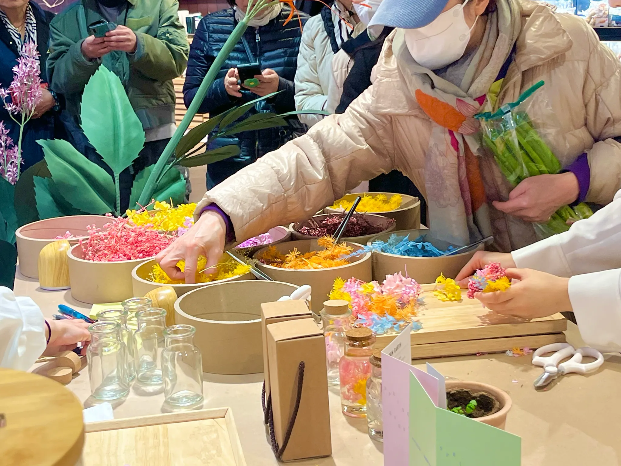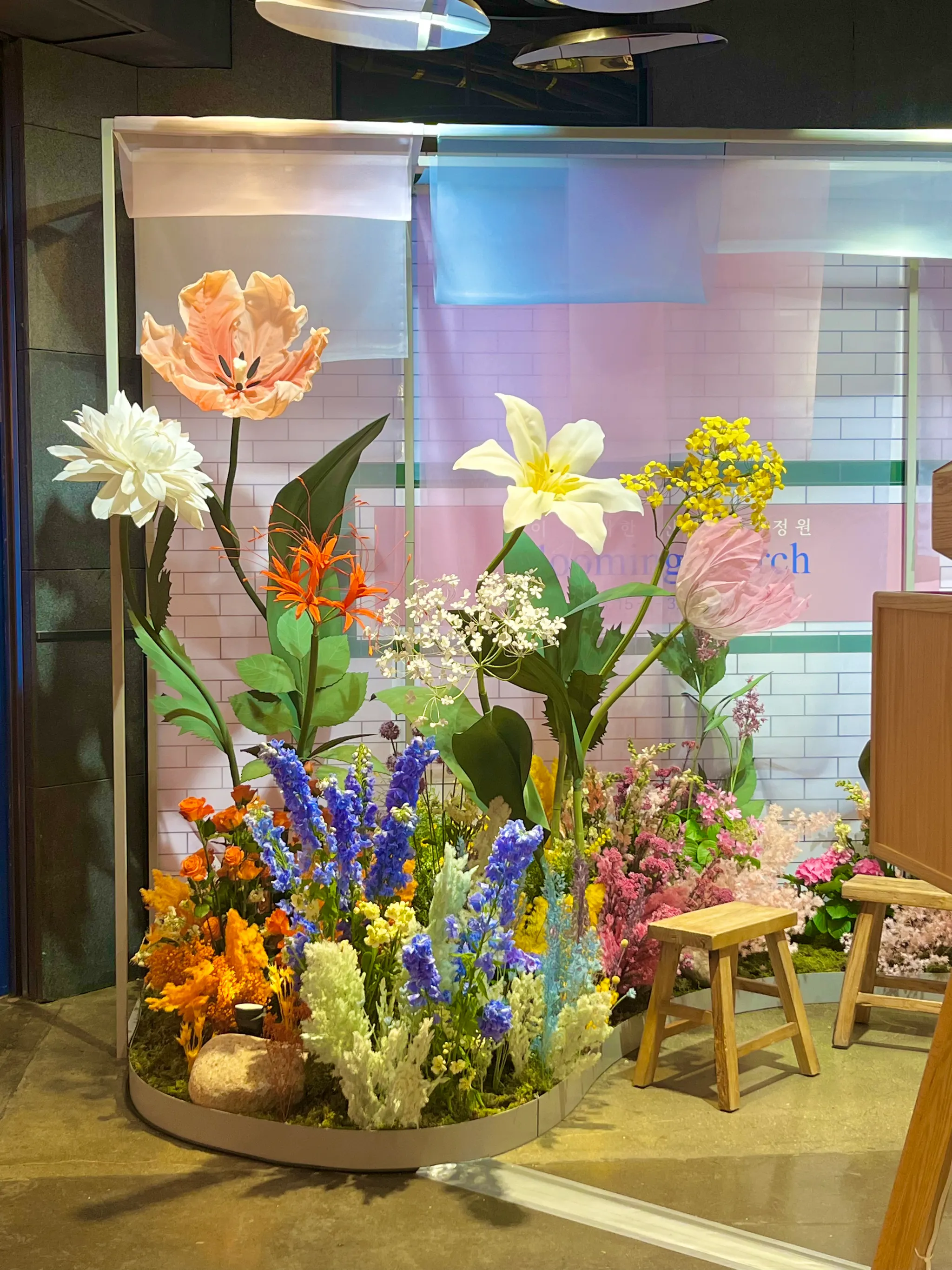 자이언트 플라워와 린넨 소재의 패브릭을 이용해 봄이 왔음을 알립니다. 현대백화점 천호점에서 전시된 팝업 존은 연출에 사용되었던 프리저브드를 이용해 하바리움 만들기 체험까지 연계하여 팝업 운영까지 진행한 프로젝트입니다.