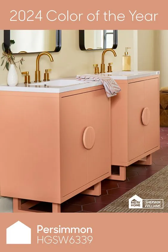 팬톤을 시작으로 다양한 그룹이 저마다 올해의 컬러를 선보입니다. 글로벌 페인트 기업인 셔윈 윌리엄스에서는 올해의 컬러로 ‘Persimmon’을 선정하였습니다. 이 컬러는 과일 중 하나인 감에서 영감을 얻은 색상으로 땅에 뿌리를 둔 흙으로부터 오는 기분 좋음과 상쾌한 느낌을 주는 색입니다. 팬톤의 피치 퍼즈와 유사하지만, 페인트 브랜드답게 실내 인테리어에서 사용할 때 따뜻한 무드를 연출할 수 있는 컬러를 제안했습니다.