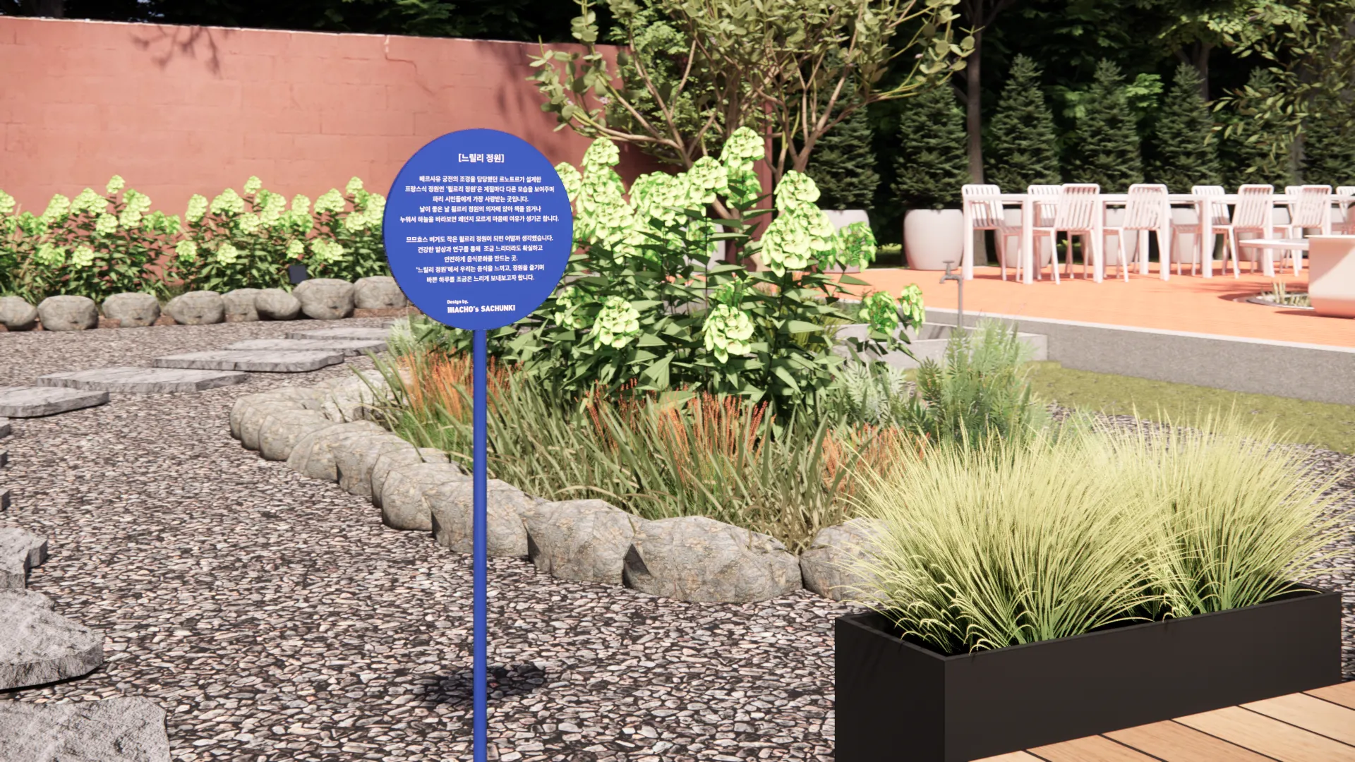 자연을 의미하는 바이오(Bio)와 사랑을 의미하는 필리아(Philla)의 합성어로 인간은 본능적으로 자연을 사랑한다는 의미를 가지고 ‘2024년 Interior Trend_자연에서의 영감’을 주제로 므므흐스의 새로운 정원을 디자인하기로 결정했습니다.