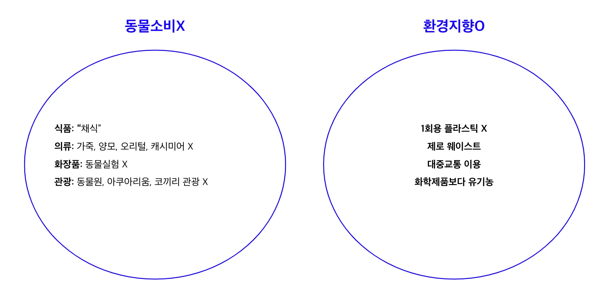 크게 동물을 소비하지 않는 것과 환경친화적인 삶을 지향하는 것 두가지로 나뉘는 듯합니다.
