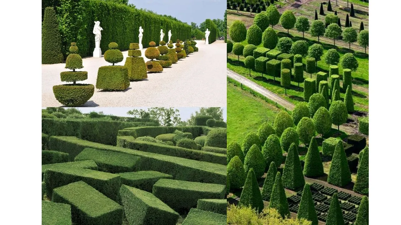 프랑스 베르사유 궁전의 토피어리 조경들과 여러가지 특이한 형태의 수목들.