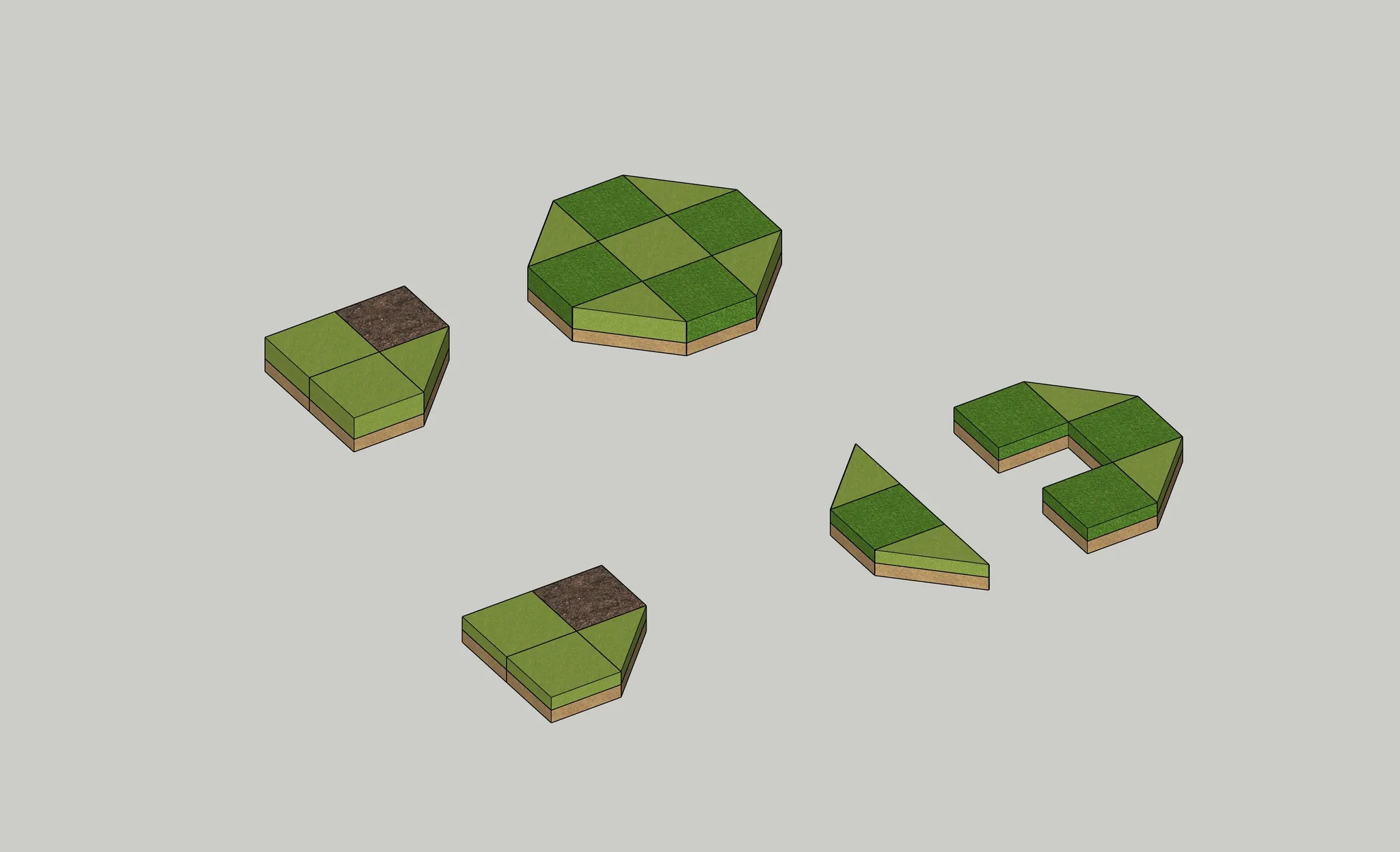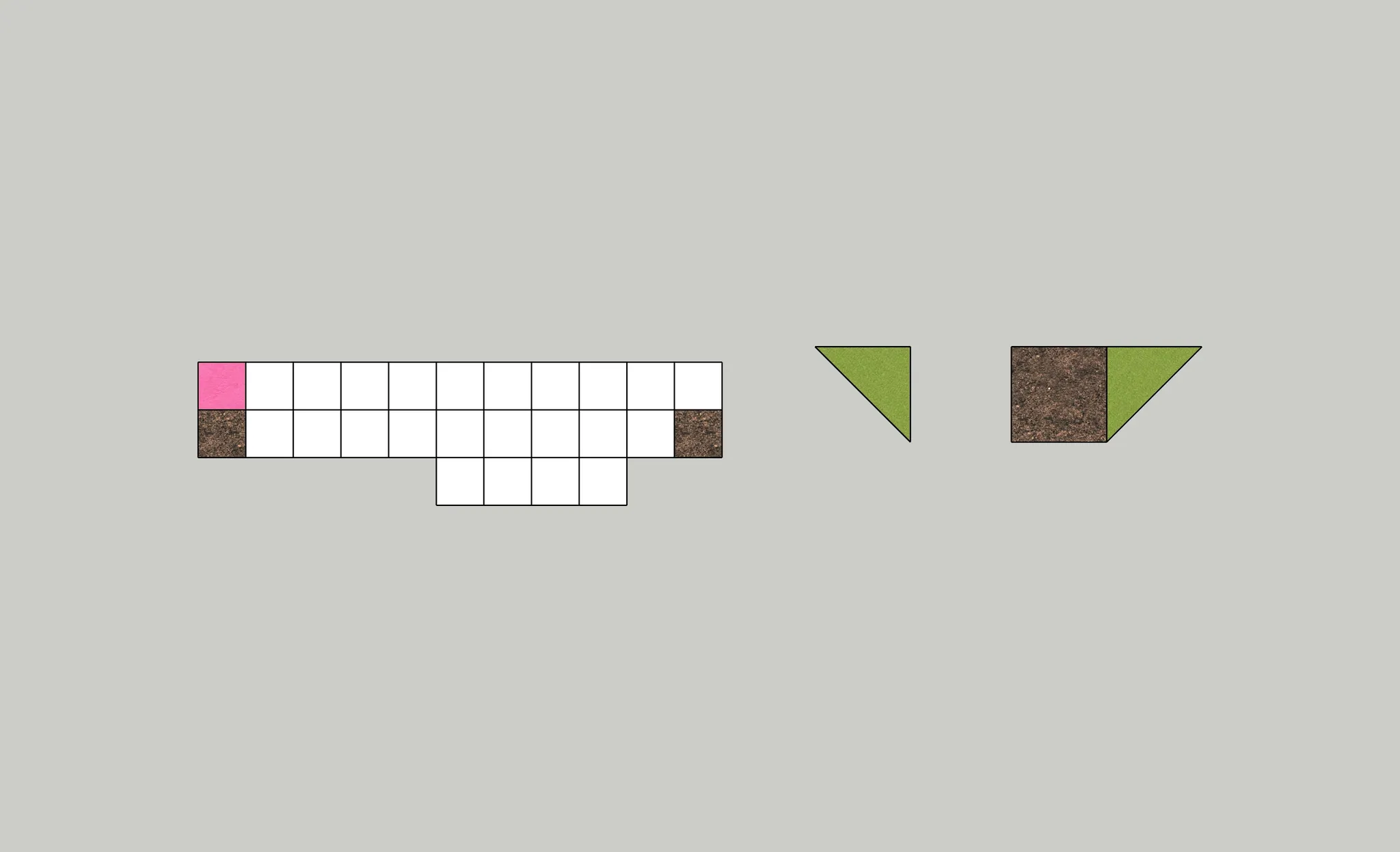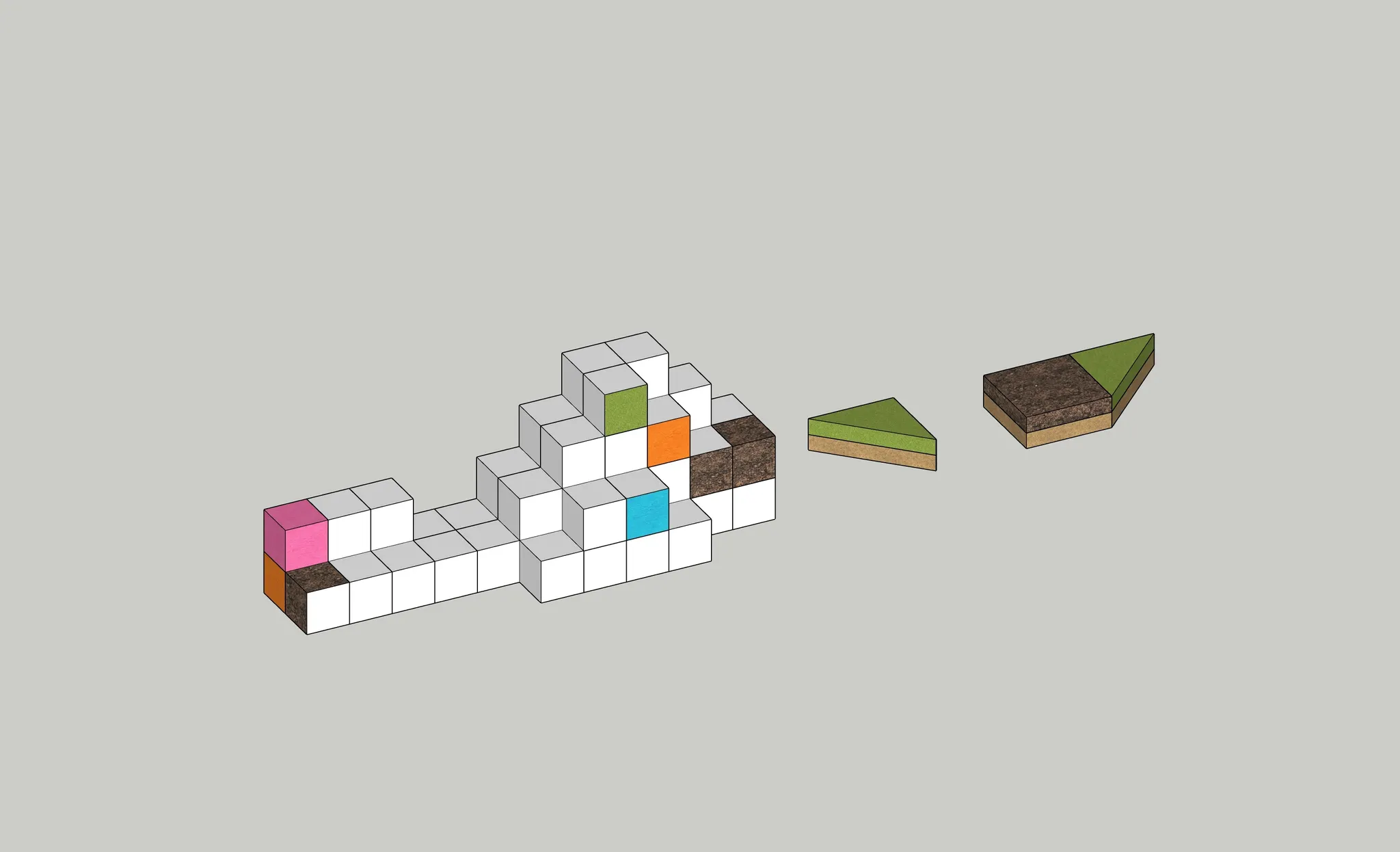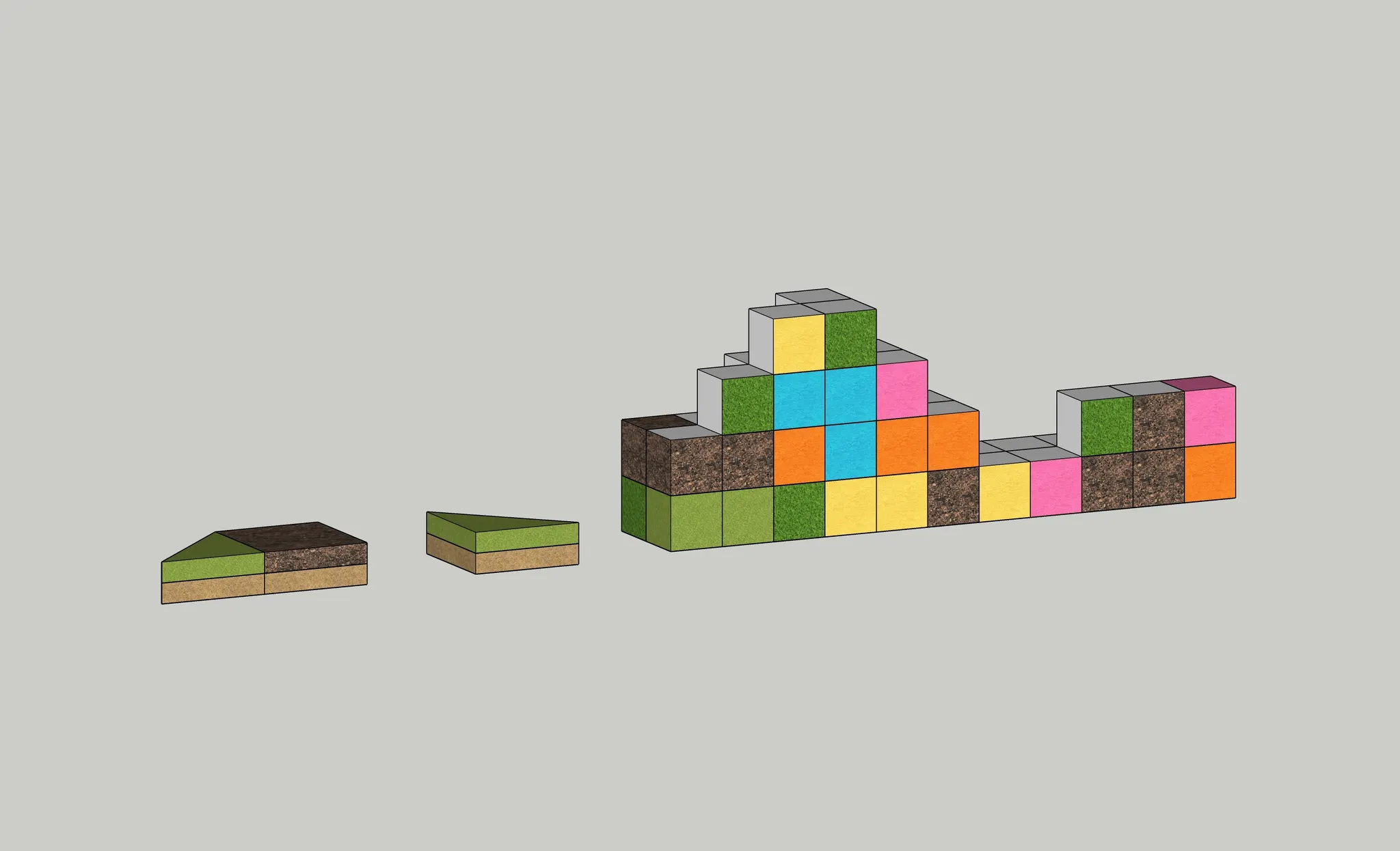 기존의 둔덕형식에서 블럭과 토피어리의 형태를 더욱 직관적으로 표현하기 위해, 과감하게 기존의 유선형 마운틴 형태에서 벗어나 픽셀형 마운틴을 연출 했습니다