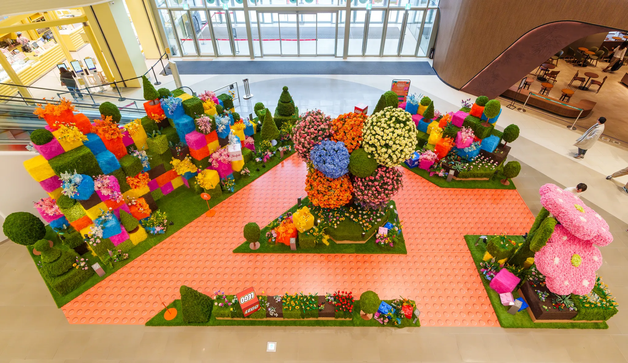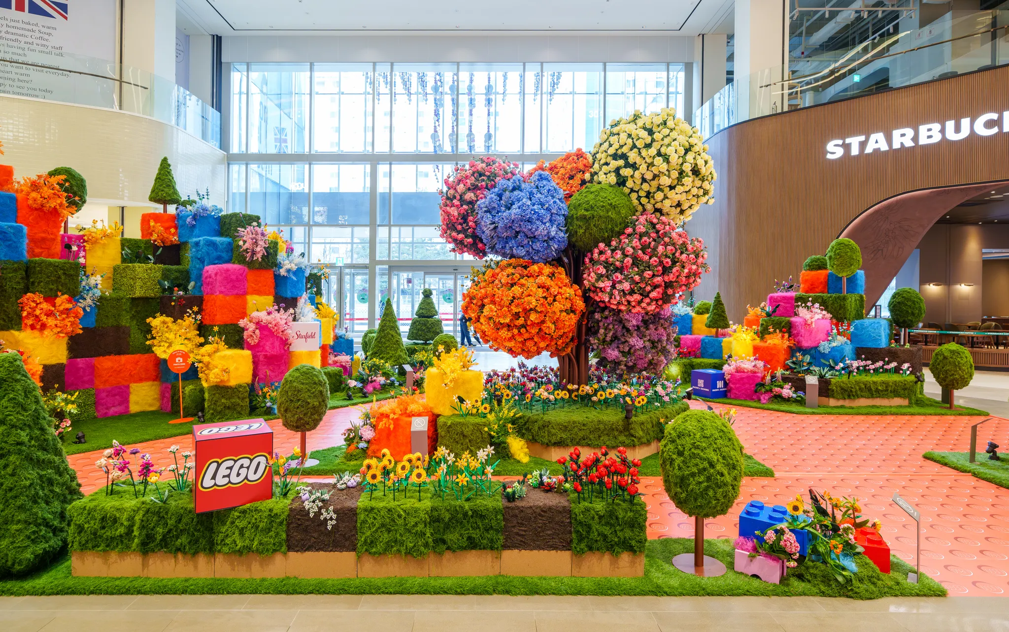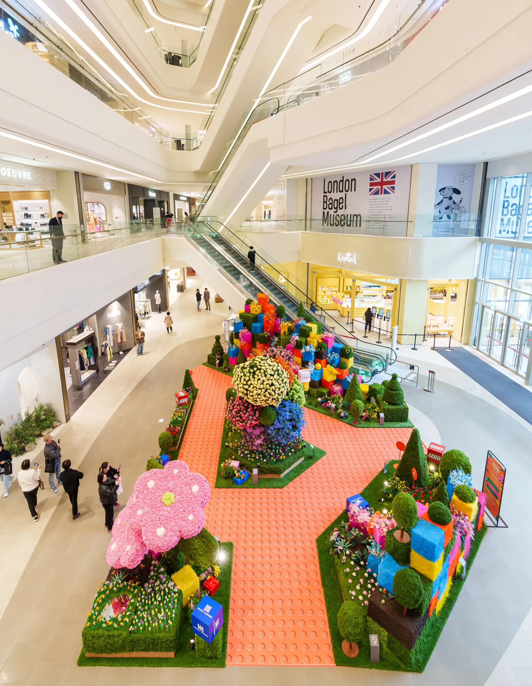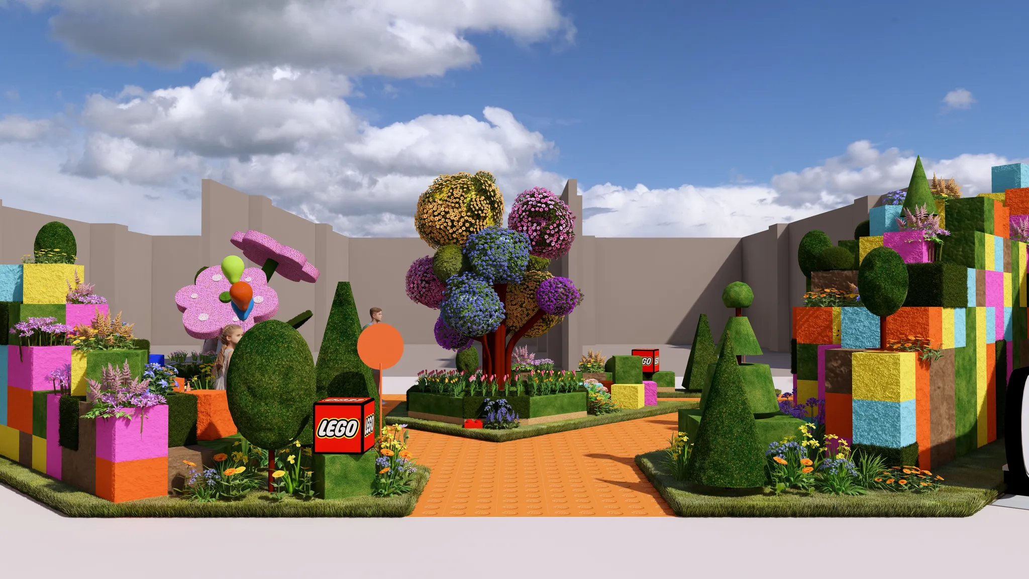 앙증맞은 레고플라워를 자이언트 크기로 형상화한 시그니처 토피어리 플라워,