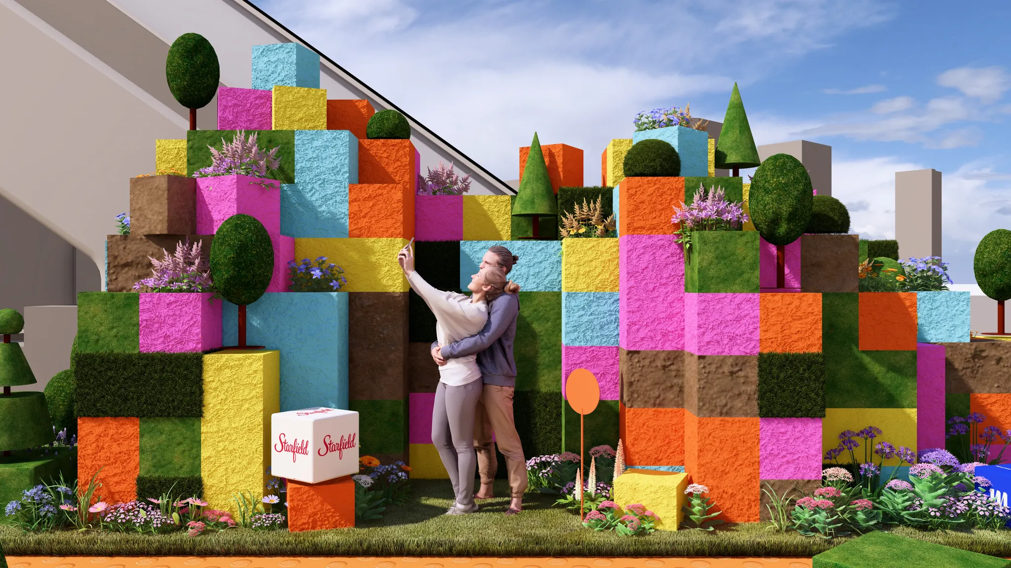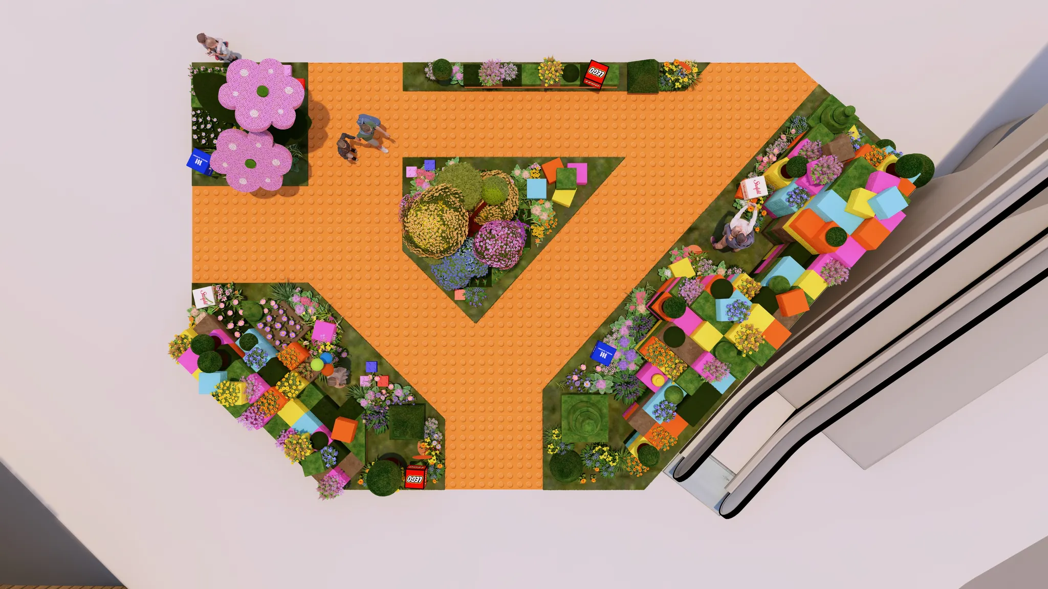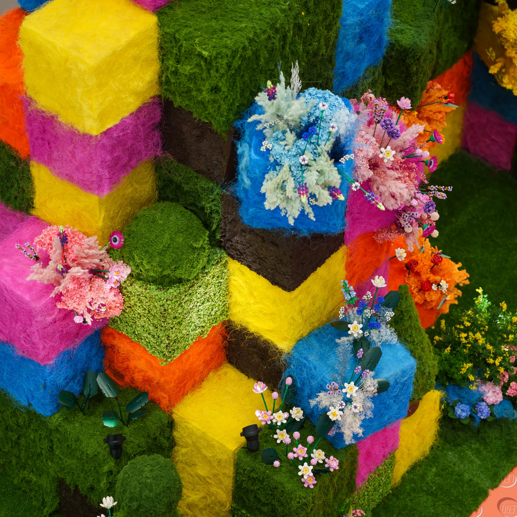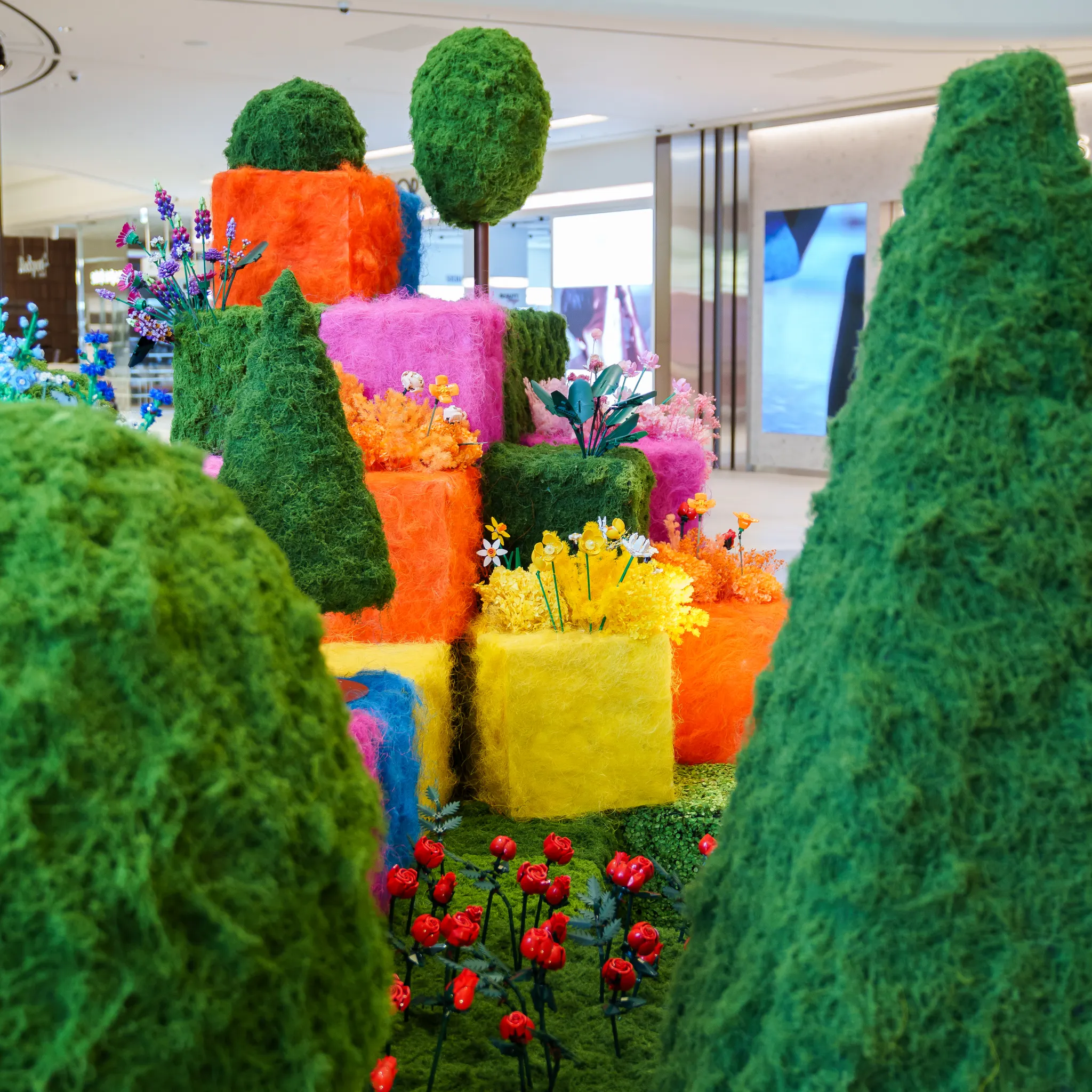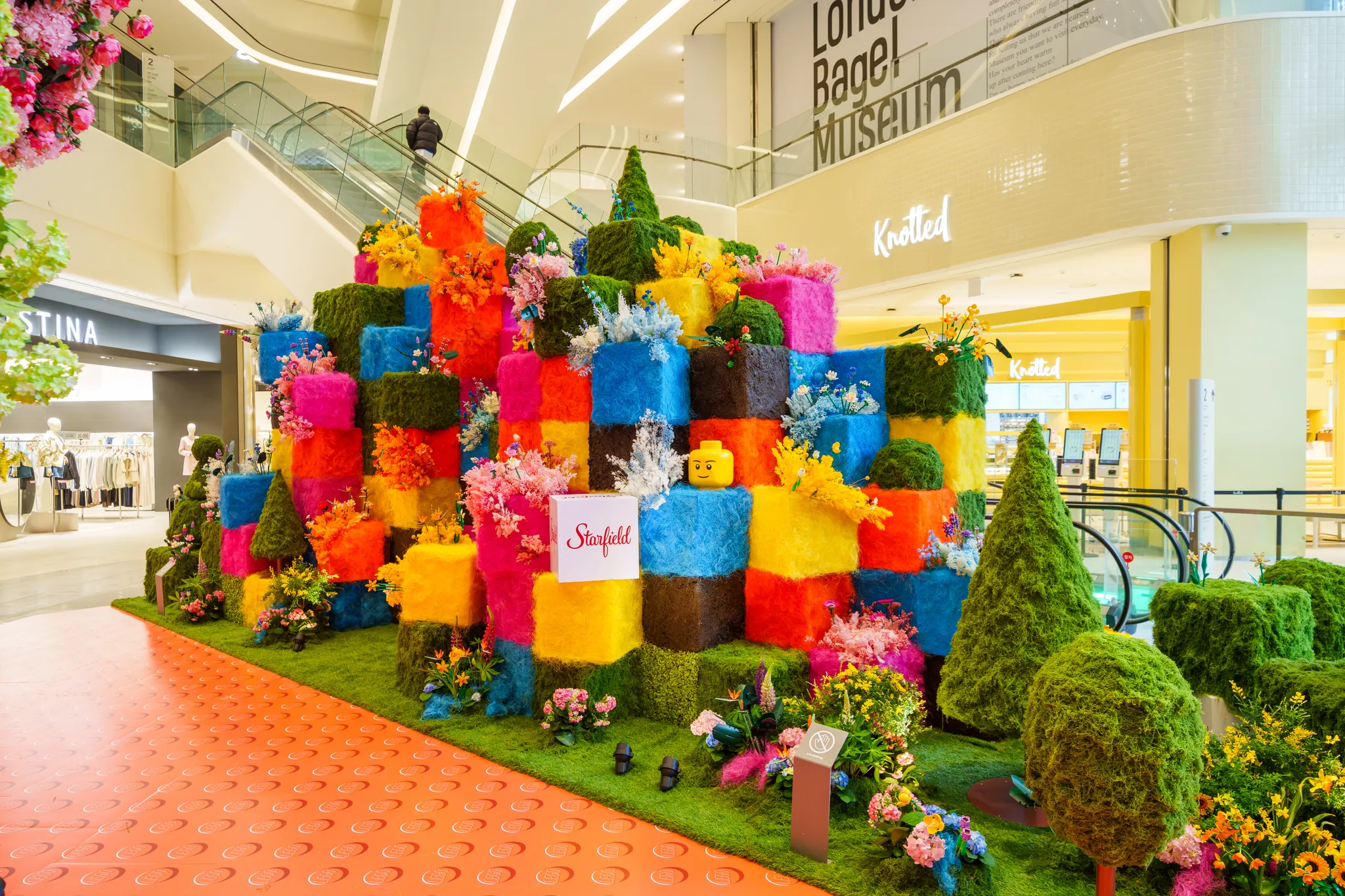 앙증맞은 레고플라워를 자이언트 크기로 형상화한 시그니처 토피어리 플라워,