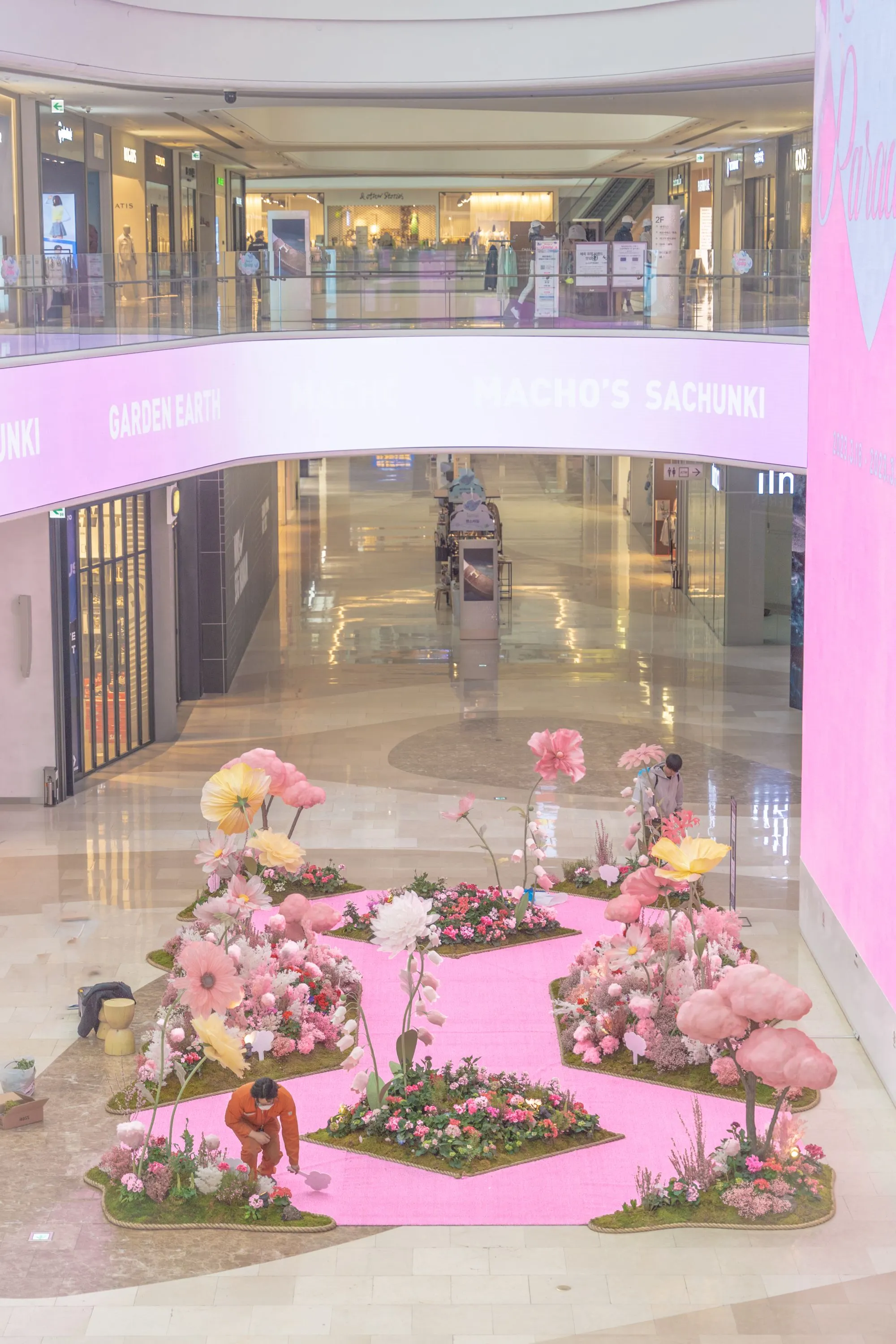 스타필드 수원은 오픈한지 한달만에 200만명의 방문객을 기록하고, 인스타그램 업로드 게시글만 3만개에 육박하는 현재 가장 핫한 공간이라고 할 수 있습니다. 마초의사춘기는 이 공간에 플라워 오브제를 활용하여 우리만의 봄의 정원을 만들어 보는 뜻깊은 경험을 했답니다