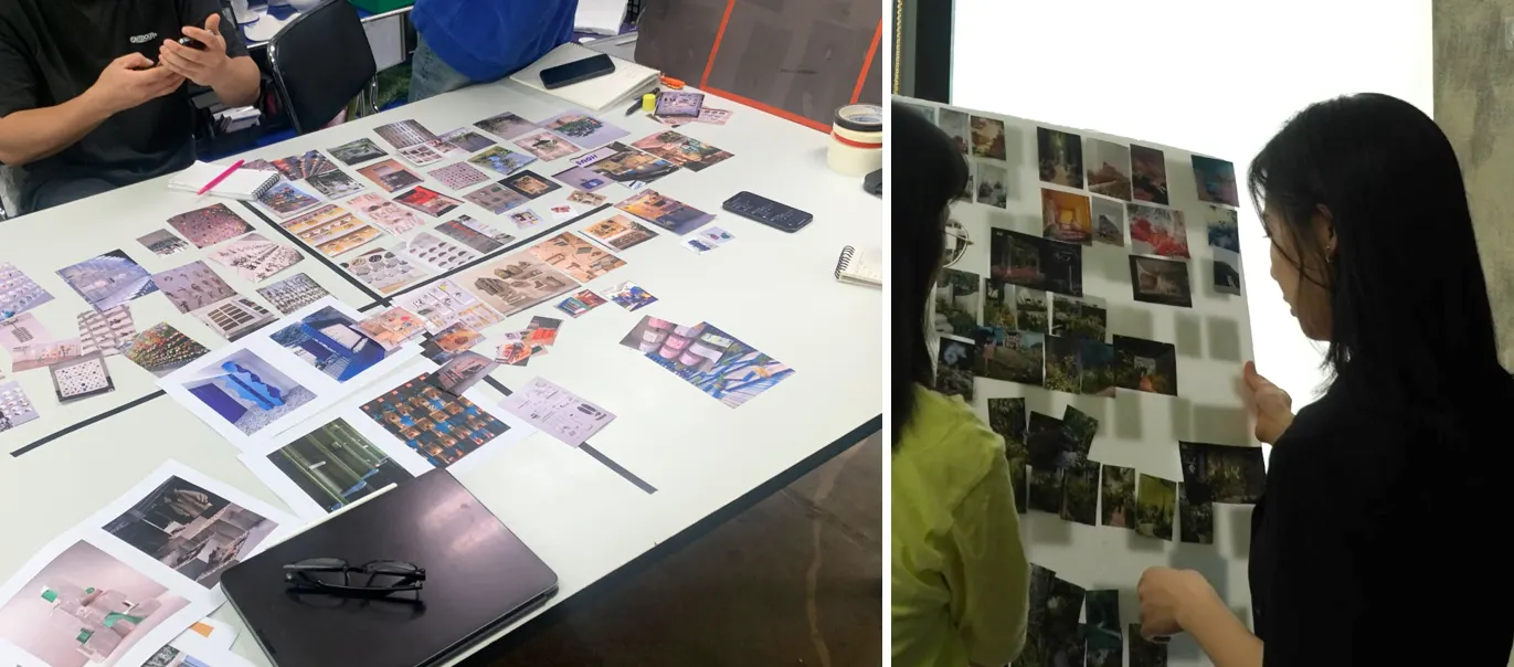 그 다음에 수백개의 레퍼런스를 찾아 팀원들은 서로의 머리를 맞대고 이런저런 아이디어를 회의 합니다. 수백개의 레퍼런스들은 마초의사춘기의 시선으로 조합, 재해석 되는데요!