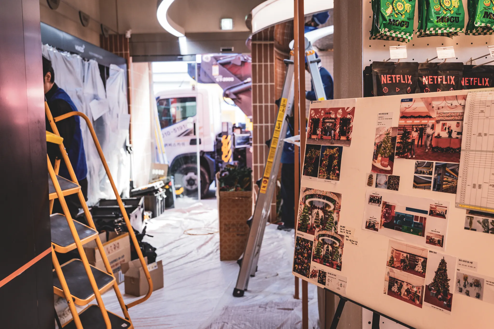 DS팀은 현장에서도 긴장의 끈을 놓을 수 없습니다. 현장에서 누구보다 디자인에 대한 애정을 가지며 완성도 높게 구현될 수 있도록 섬세하게 감리합니다. 양중 작업부터 오픈 직전 청소로 마무리하는 단계까지 모든 작업에 함께합니다.