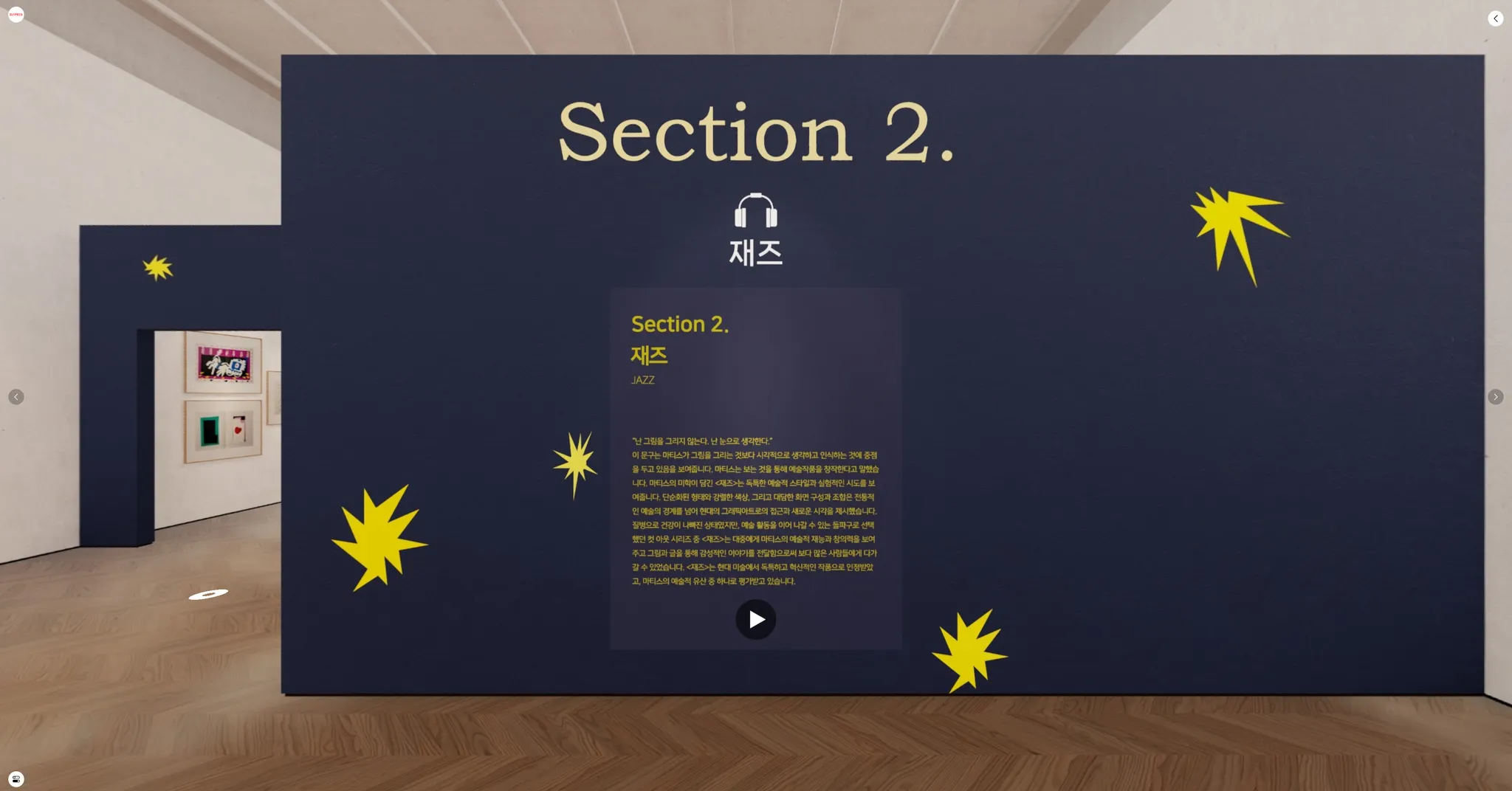 앙리마티스 특별전시회의 공간을 버추얼 3D 가상공간으로 구현한 사례입니다. 현장의 도슨트 경험 제공은 물론, 전시 이후에도 감동을 되새길 수 있는 버추얼 공간, 버추얼 도슨트 기능 도입을 통해 전시/갤러리 분야의 신규 수익화 방법을 제시했습니다. 현장에서 기기를 빌려서 도슨트를 듣는 대신, 내 모바일 기기로 바로 접속해서 들을 수 있다는 점과 집에 돌아와서도 언제든 다시 버추얼 3D 공간을 방문해 현장에서의 감동을 다시 한 번 느낄 수 있다는 점이 고객들의 큰 공감과 응원을 불러냈습니다.